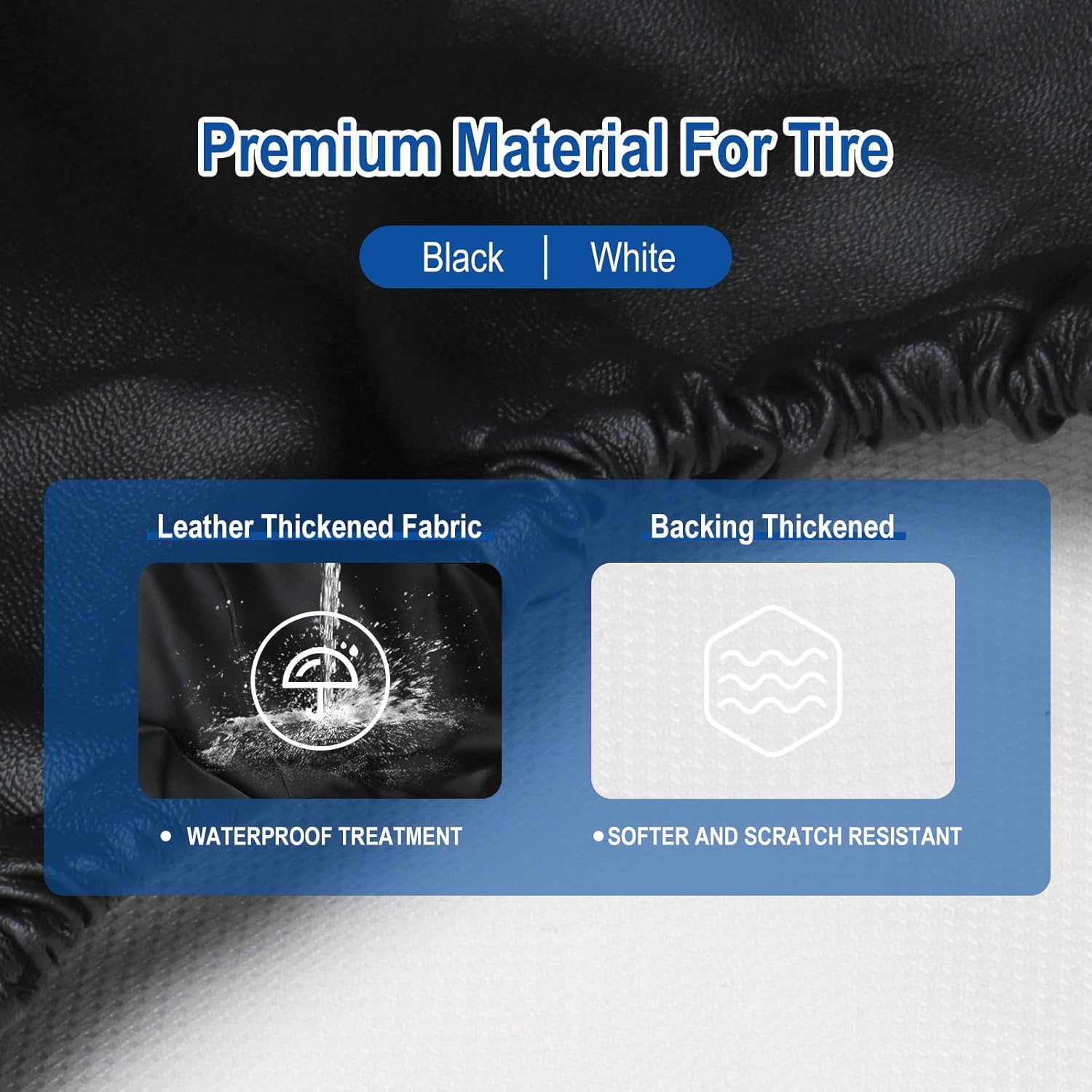 All-Weather Toughness: the surface of the RV tire covers Features a seamless polyurethane (PU) coating that creates a watertight barrier, preventing rain and moisture from reaching your spare tire. Blocks harsh UV rays to prevent cracking, fading, and premature aging, extending your tire’s life span.