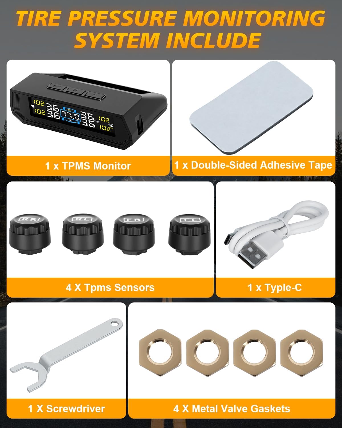 RV TPMS EASY INSTALLATION: The wireless tire pressure monitor frees you get rid of the complex wiring and pending time looking for a mechanic. Just screw the external sensors onto the tire valve, with no wiring or tire removal needed. The system automatically pairs and starts displaying data within moments of you starting to drive. The tire pressure sensors has 2 years battery life with replaceable CR1632 battery, perfect for RVs, trucks, and highway towing, sedans, SUVs, MPVs, pickup trucks, and travel trailers.