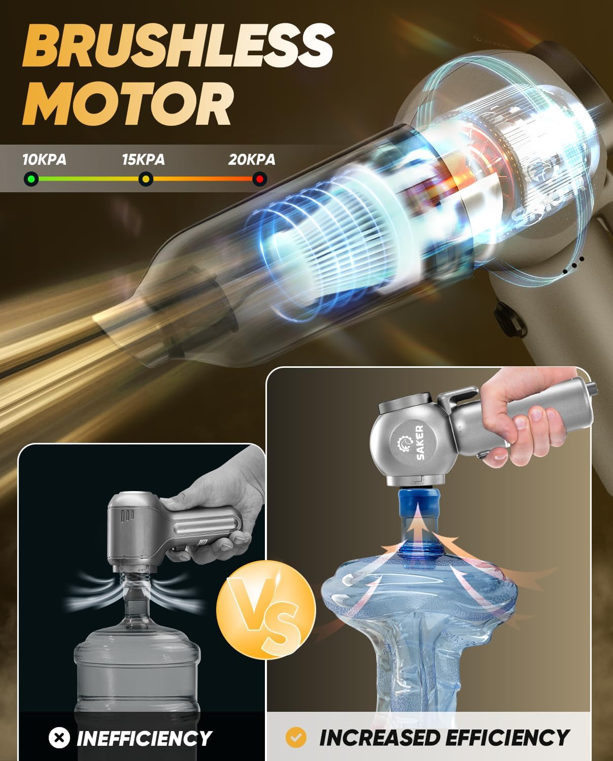 【Powerful Brushless Motor】The Saker car vacuum portable cordless adopts an upgraded high-speed motor with powerful performance, which can achieve three levels of suction adjustment, and can provide 20000pa suction in the maximum mode. Can help you remove dust, debris, pet hair, and other large objects from your home, office, or car within seconds.