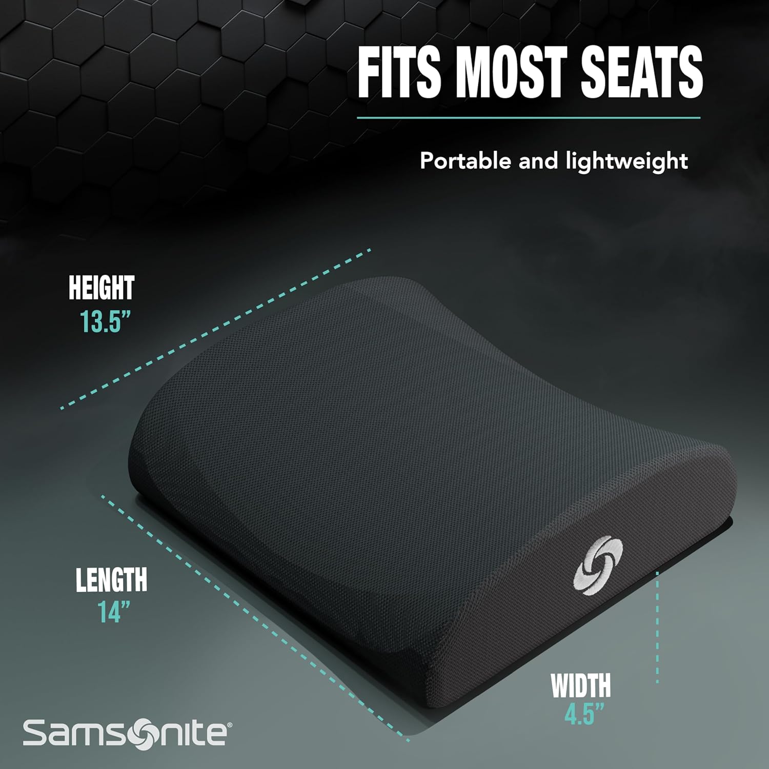 Samsonite Memory Foam Lumbar Support Pillow for Office Chair, Gaming Chair, or Automotive Use, Ergonomic Back Cushion, Home Office Essentials for Sitting Comfort and Posture Relief Back Support