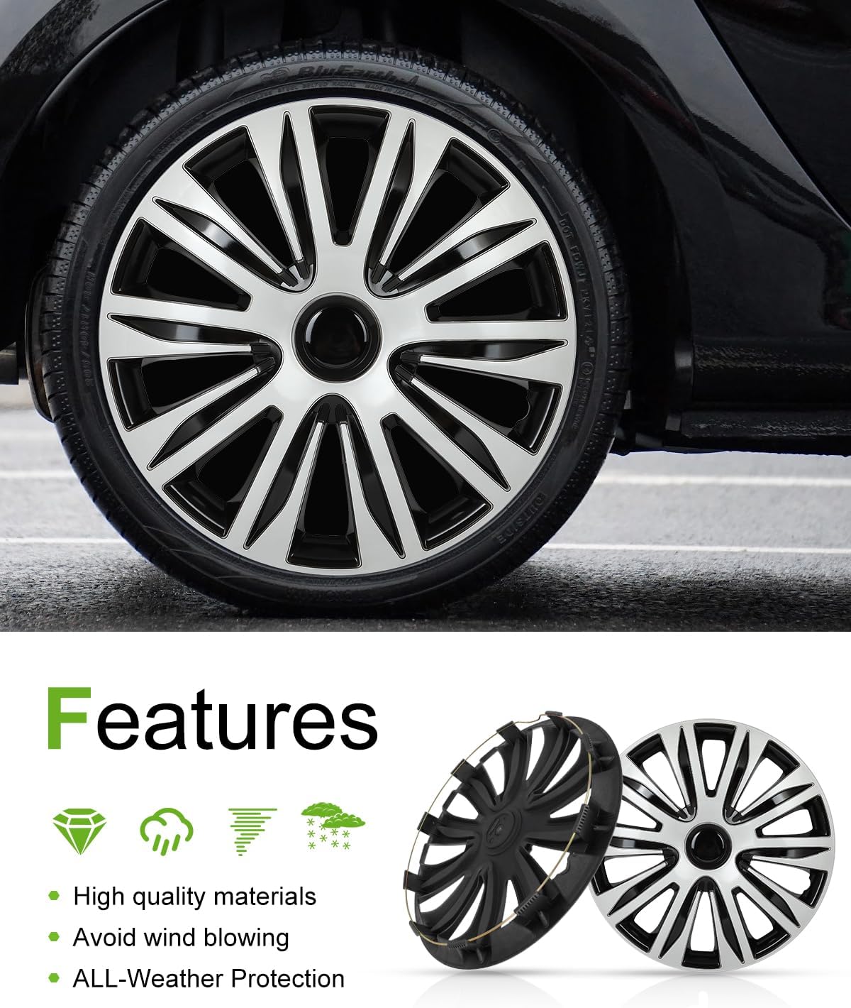 Stylish and Durable:The design of wheel covers does not only offer a Luxurious Appearance but reliable protection against scratches, dings, and other types of damage