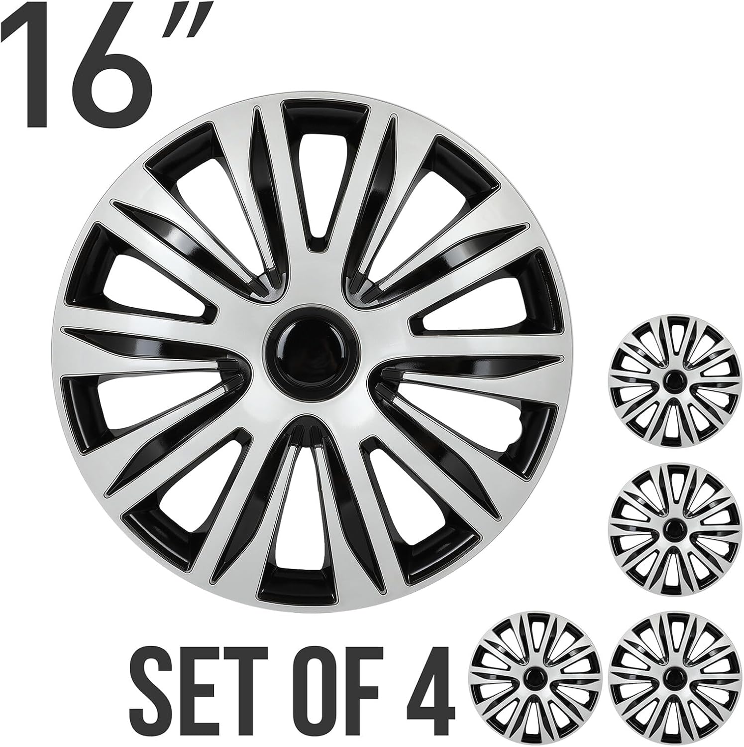 Package comes with 4-Pack Premium 16″ Hubcaps