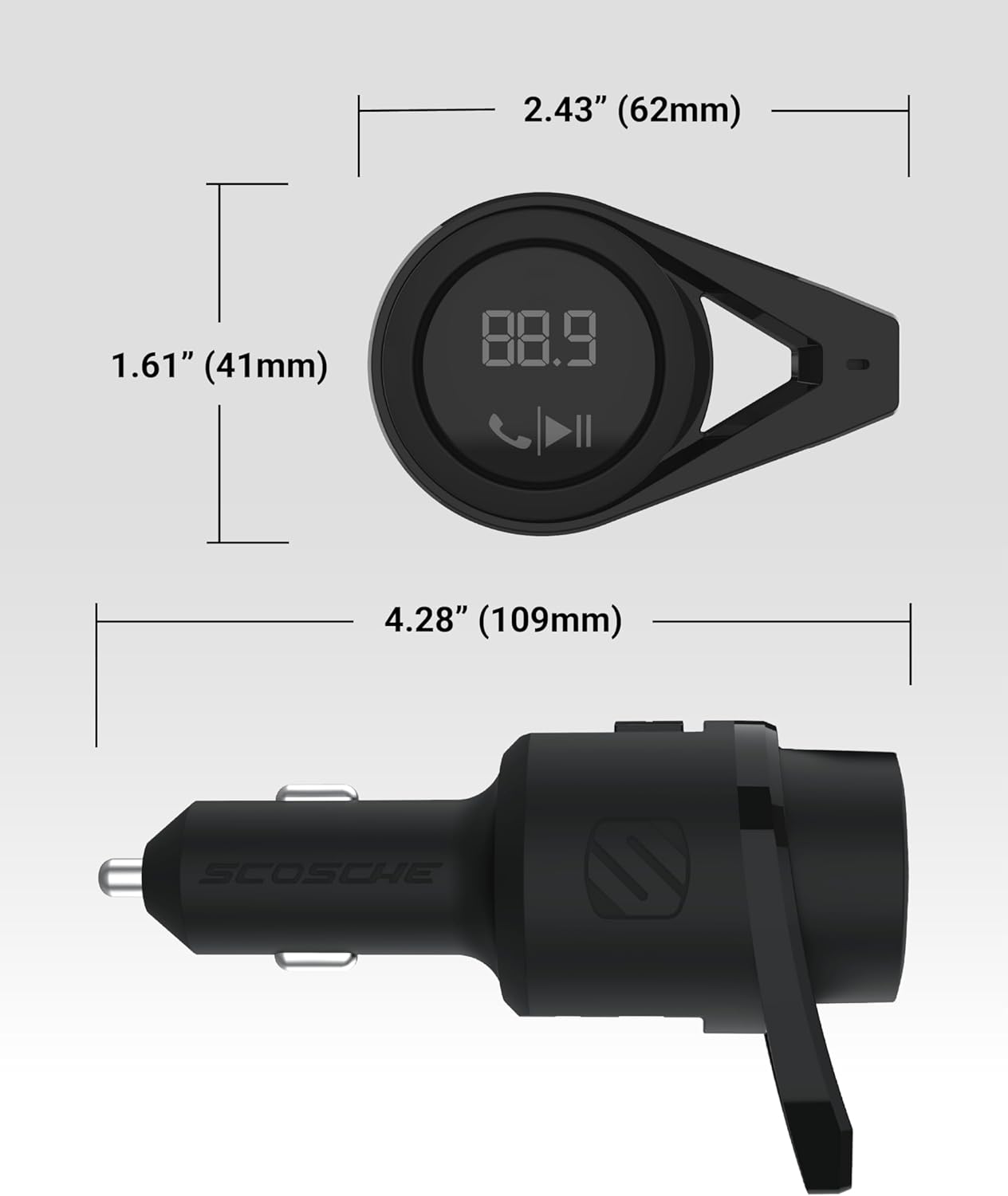 Hands-Free Car Kit – Make and receive calls effortlessly while driving with the Scosche Handsfree Bluetooth Car Kit. This Bluetooth car adapter makes it possible to connect your smartphone to your car stereo through the Scosche Bluetooth FM transmitter, allowing you to keep your hands on the wheel and eyes on the road.