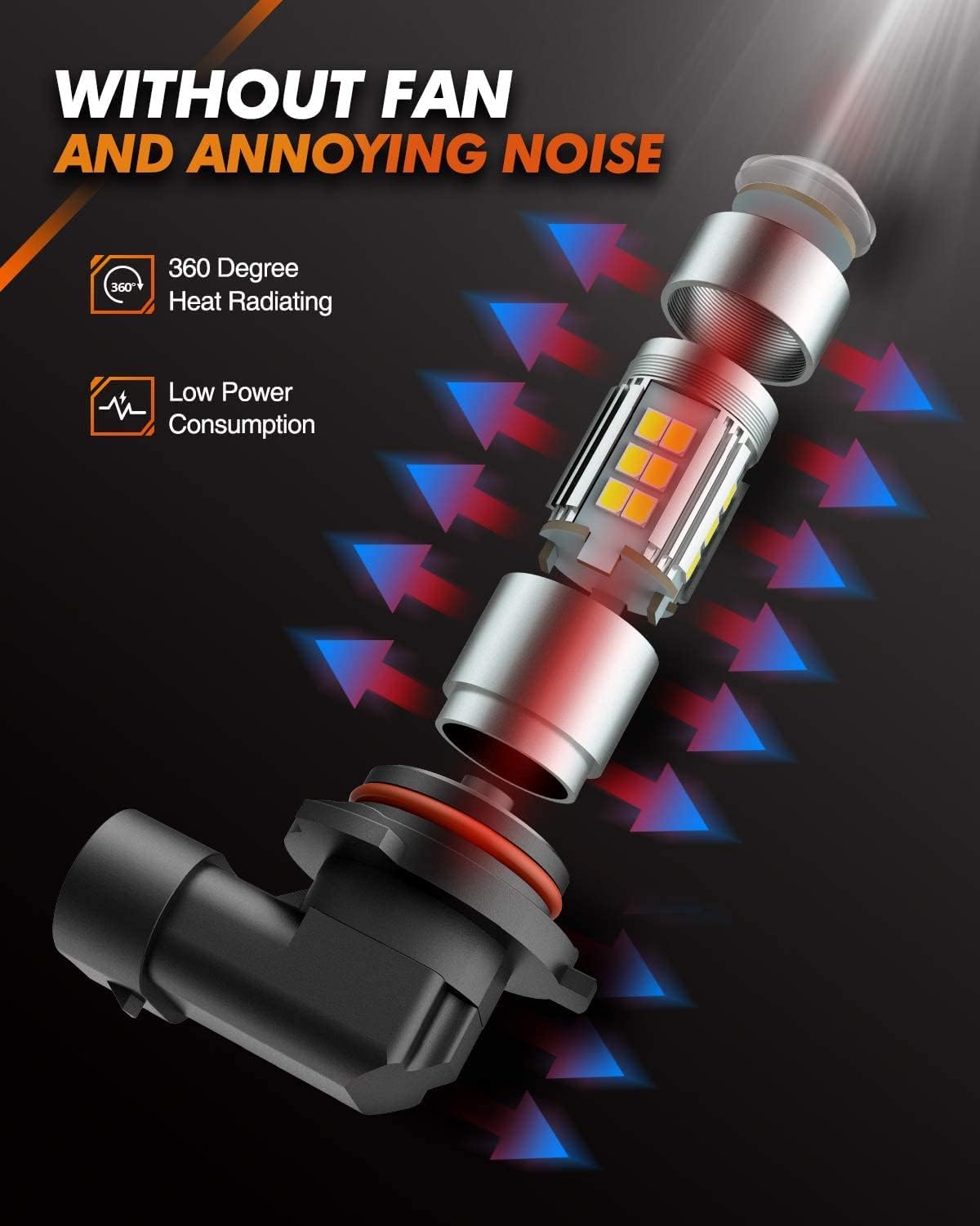 F1 Advantage: Each 9006 bulb is equipped with 27 LED chips, 360-degree illumination. The lens design projects the light farther away while forming a focused beam.