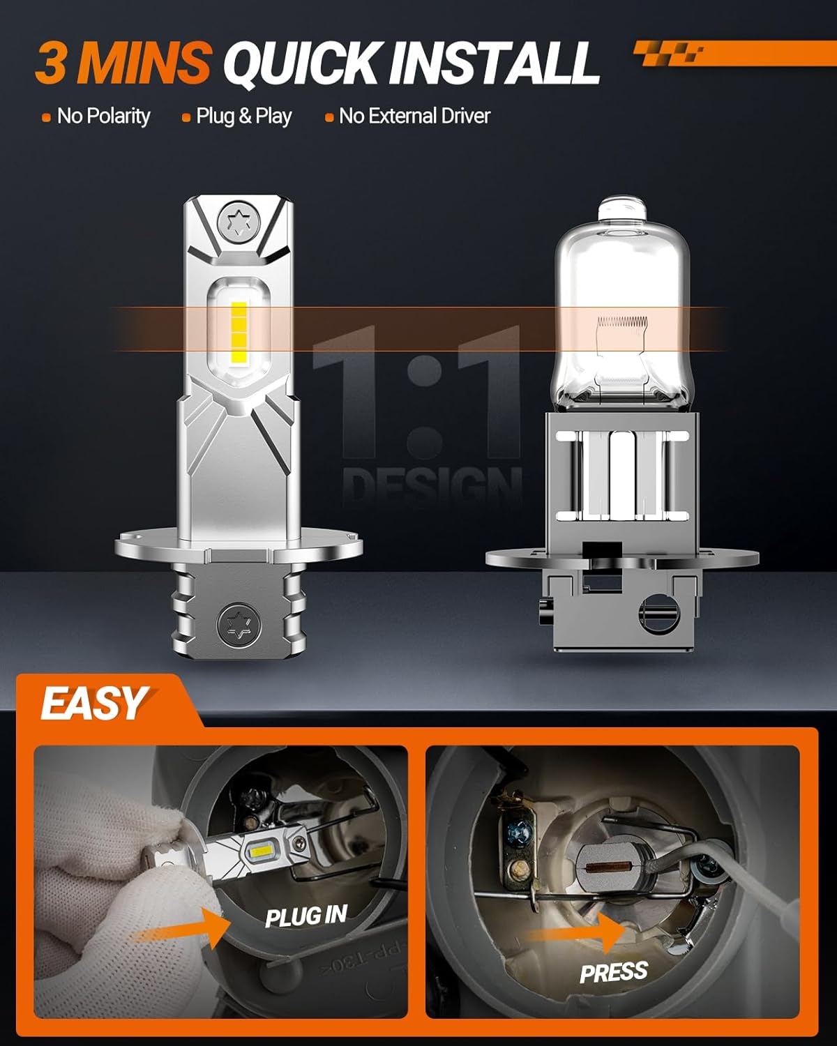 1:1 Size, Perfect Fit for H3 Housing: Compact & No Modifications Needed. Made specifically for H3 led fog lights housings, the ultra-compact led body ensures a seamless fit with zero modifications required. Just a secure, stable installation in minutes