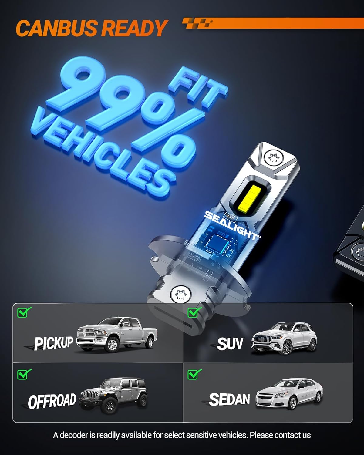 Safer Pattern for Wider & Clearer Visibility: Designed with a latest high-quality led chip that precisely mimics the original bulb filament, sealight h3 led fog light bulb deliver a perfect beam pattern with no dark spots and no glare. The enhanced surround-lighting design spreads light evenly across the road, giving you a wider, clearer field of view for safer driving. Clearance light marker light