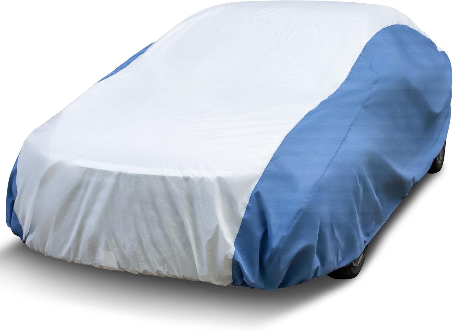 Season Guard HYVEK™ Car Cover for Sedan up to 228″, Waterproof All-Weather Outdoor Cover with PE Outer & Cotton Lining, Breathable Blue Sides, Scratch-Resistant, UV Protection, White/Blue