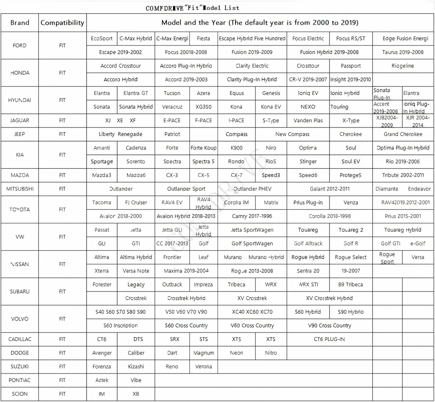 Fit Chevrolet: Aveo, Bolt EUV, Bolt EV, Caprice, Cruze, Sonic, Volt, Blazer, Malibu, Trailblazer / Fit Cadillac: CTS, SRX Fit Chrysler : 300, Town & Country / Fit Dodge: Charger, Journey