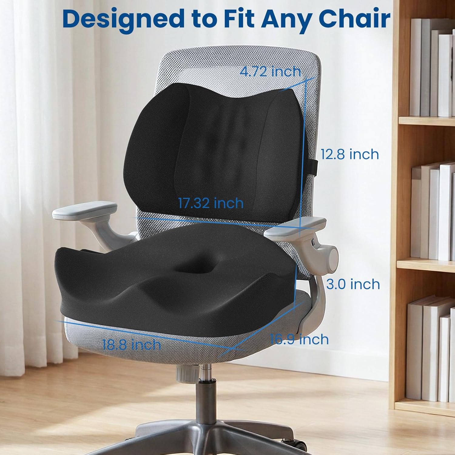 【Enjoy Ultimate Comfort & Pain Relief】Say goodbye to discomfort during long hours of sitting! Our office chair cushion and lumbar support pillow set contours perfectly to your body, providing exceptional sciatica, tailbone, lower back, and hip pain relief. Whether you’re working at a desk, driving, or gaming, you’ll enjoy all-day comfort and support for your spine.