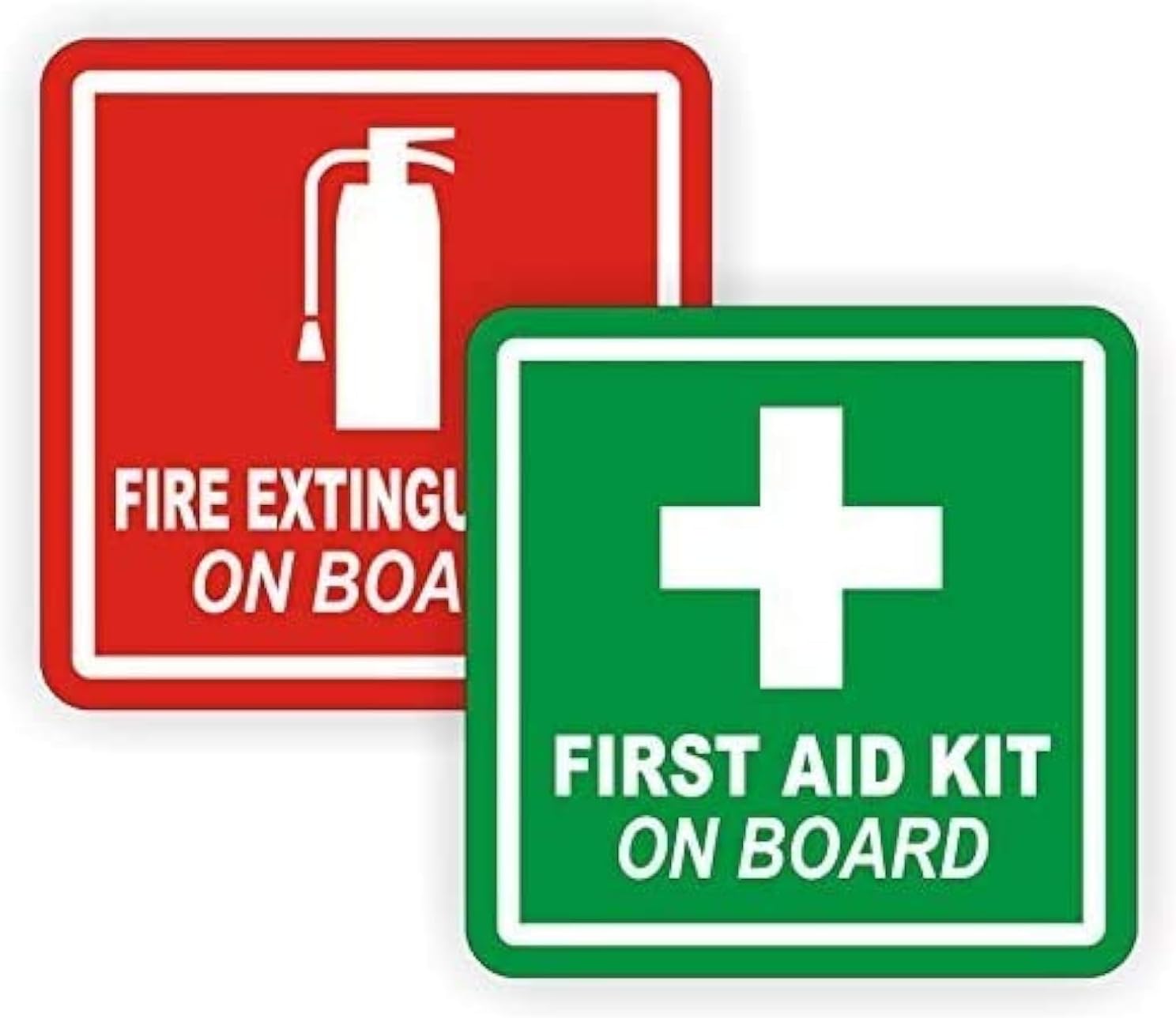 8 reviews for Set of 3 Pairs (6 Stickers) 3″ Fire Extinguisher/First Aid Kit on Board Vinyl Decals/Stickers/Labels Pair