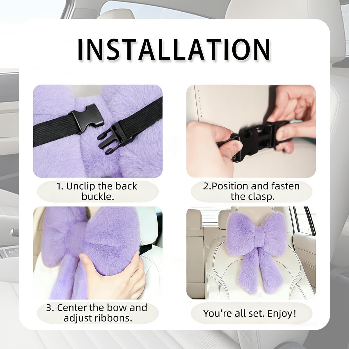 Easy Install & Care: Featuring upgraded elastic straps with durable buckles, this bow pillow stays firmly attached to headrests—even on bumpy roads, freeing you from constant readjustments. Machine-washable fabric simplifies maintenance after travel adventures. Our car neck pillows come vacuum-sealed. After opening, gently pat and massage them to help them fluff up and soften. Placing them in direct sunlight for 48 hours can help them get even softer and more cushiony