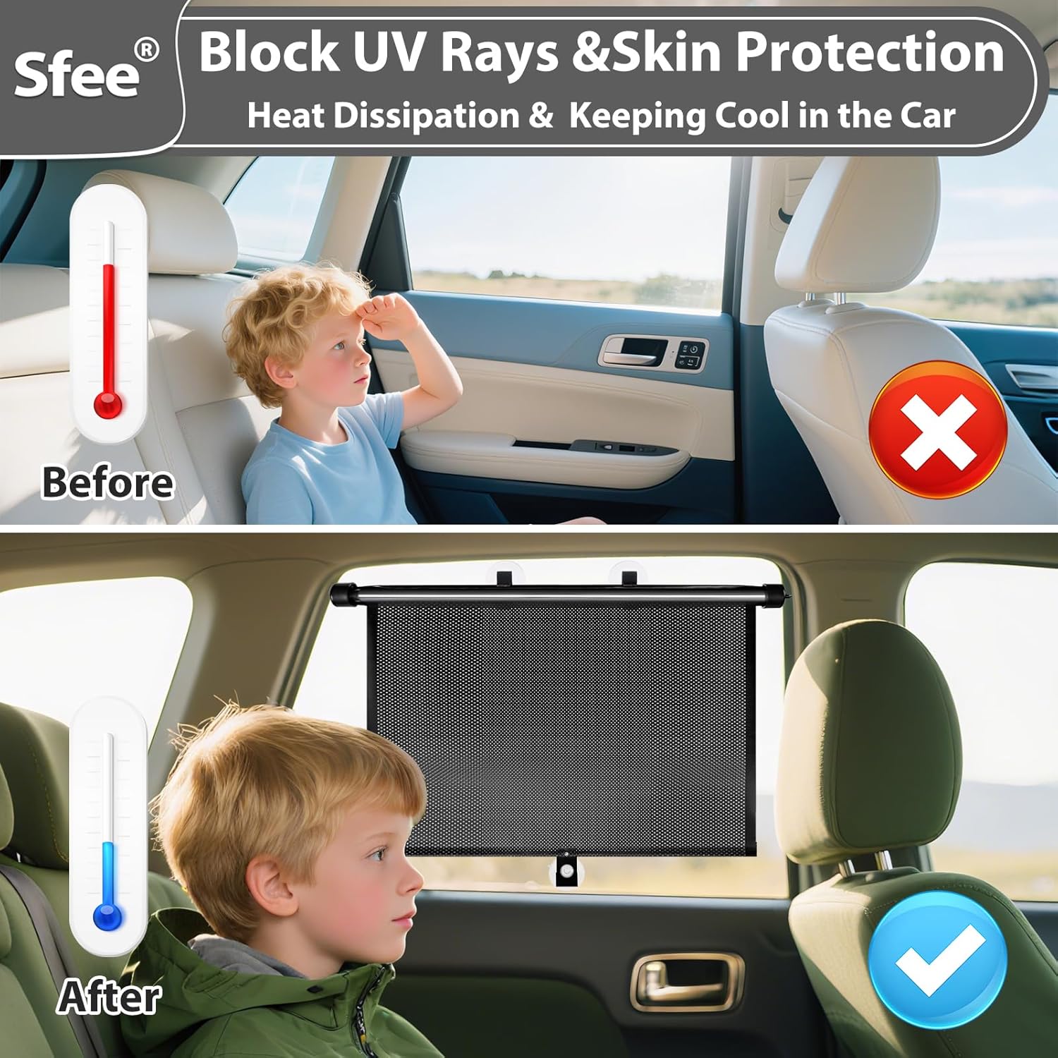 Sfee Premium Car Side Window Shades Blocks UV Rays & Heat -Keeping Cool in Car