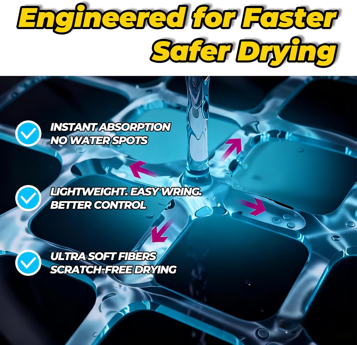 OPTIMIZED SIZE FOR REAL-WORLD DRYING – 29×33 inches provides full-panel coverage without sacrificing control. Easier to maneuver than oversized towels that become bulky and awkward