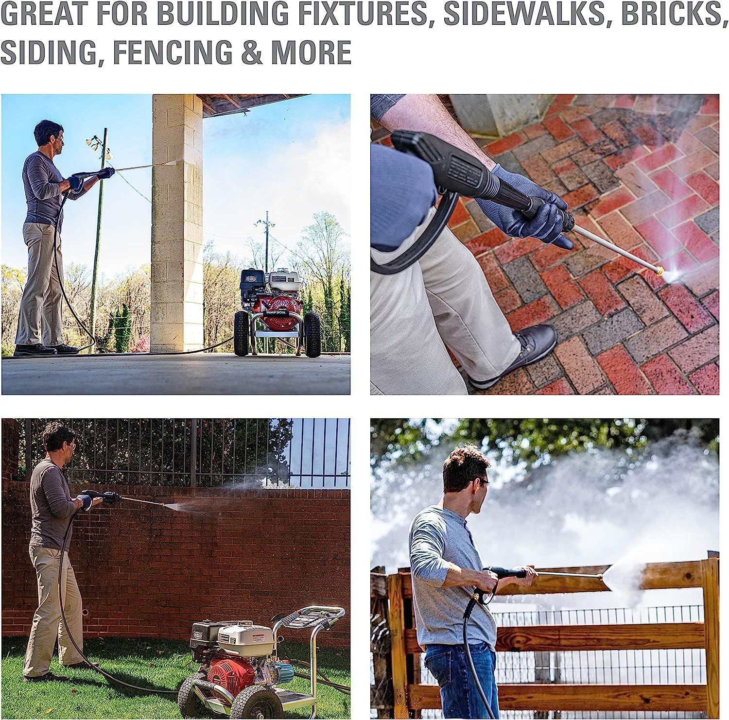 SIMPSON PRESSURE WASHER FOR PROFESSIONALS: The Simpson Aluminum Series gas power washer cleans decks, driveways, siding, fencing, equipment, and graffiti; The cold water machine is great for contractors; 49-State Compliant (Not for sale in California)