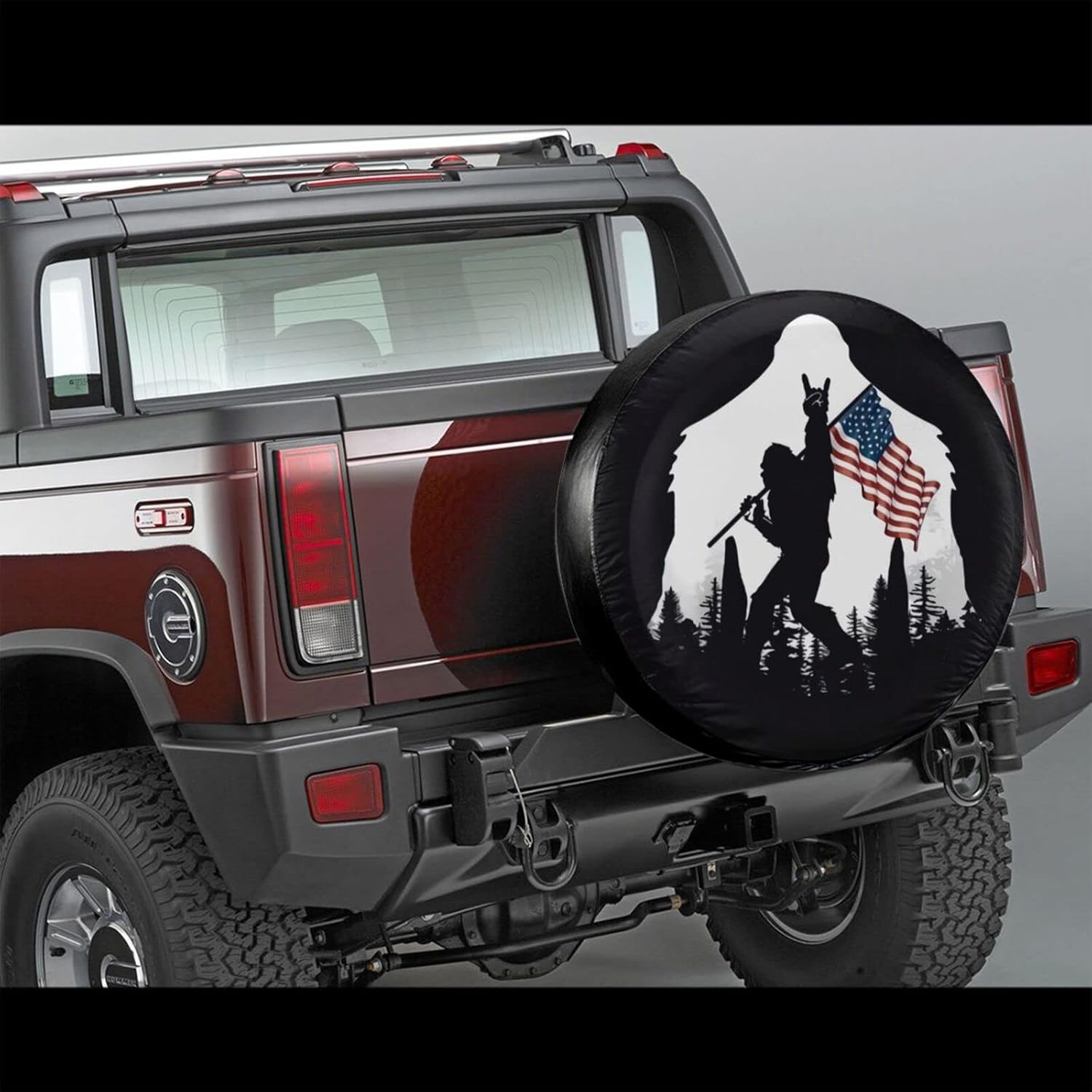 Cool big foot with flag design. Fits my tire well. String mechanism to tighten around tire could be better. Biggest thing I dont like and want to share, the outer facing fabrick turns red over time, but the fabrick on sides doesn’t, so they used two different types of fabrick I guess. I’ve had the cover on for 1 year, and had rv covered for about 4-6 months out of the last year. Why the hell does part of this turn red so fast, but other parts don’t? Thanks China.