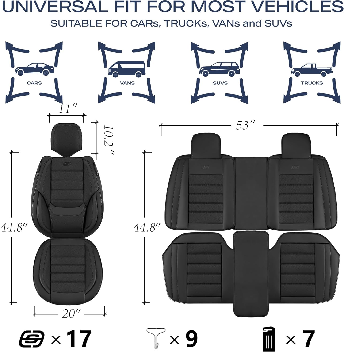 MAX CUSHIONING:The seat coversImitation Skechers Leather Craftsmanship, feature the same Max cushioning technology as Skechers athletic shoes, with extreme padding for superior comfort and support. Enhanced padding provides long-term support and relieves pressure-related stress while protecting your car seats from spills, stains, pet hair, and harmful UV rays. Designed to be fade-resistant, gentle to the touch, these seat covers are waterproof, breathable, and durable for years of reliable use.