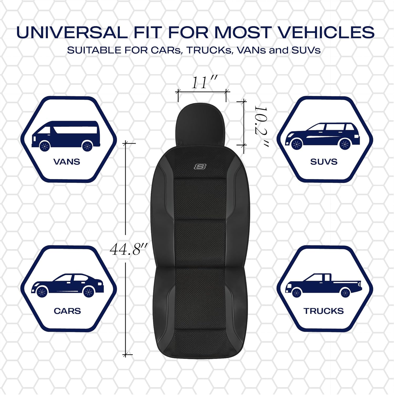 Skechers Men’s Memory Foam Seat Covers, Air Cool Mesh Thick Car Seat Covers, Car Seat Covers Front Seats Airbag Compatible, Universal Automotive Comfort for Most Cars, Vans, Trucks, SUV,Black
