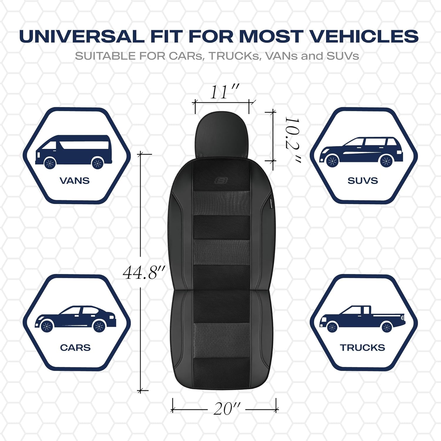 UNIVERSAL FIT & EASY INSTALLATION-Skechers seat cover sits 99% sedans, SUVs, trucks (e.g.,Camry/CR-V/F-150). These seat covers are easy to install with no tools required, and an installation instruction manual is included in the package for step-by-step guidance. Due to packaging, slight wrinkles may appear upon unpacking, but the seat covers will regain their shape within a week after installation.