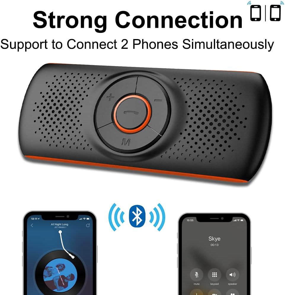 CONNECT WITH 2 PHONES: This Bluetooth car kit supports connecting to 2 mobile phones at the same time. We provide 18 months warranty service and welcome any suggestion you have for the Bluetooth car speakerphone