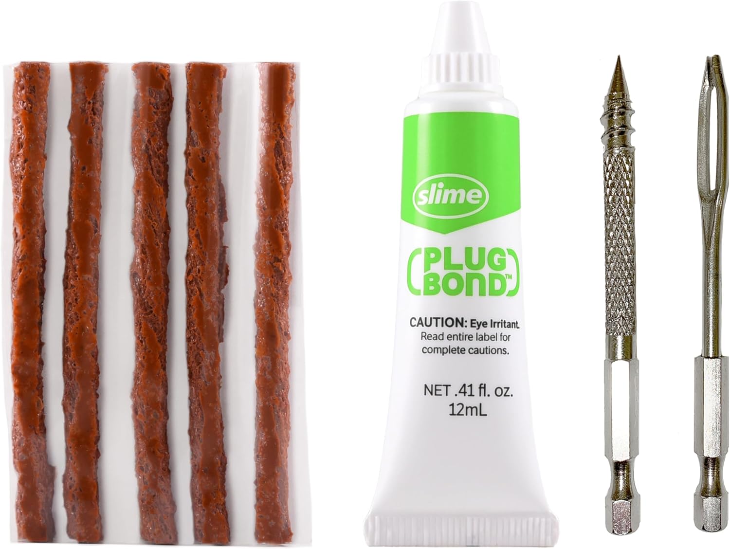 With high strength reamer and plugger bits that work with all drills, this 2-piece set eliminates all the physical effort (i.e. hard labor!) previously required to plug a tire.