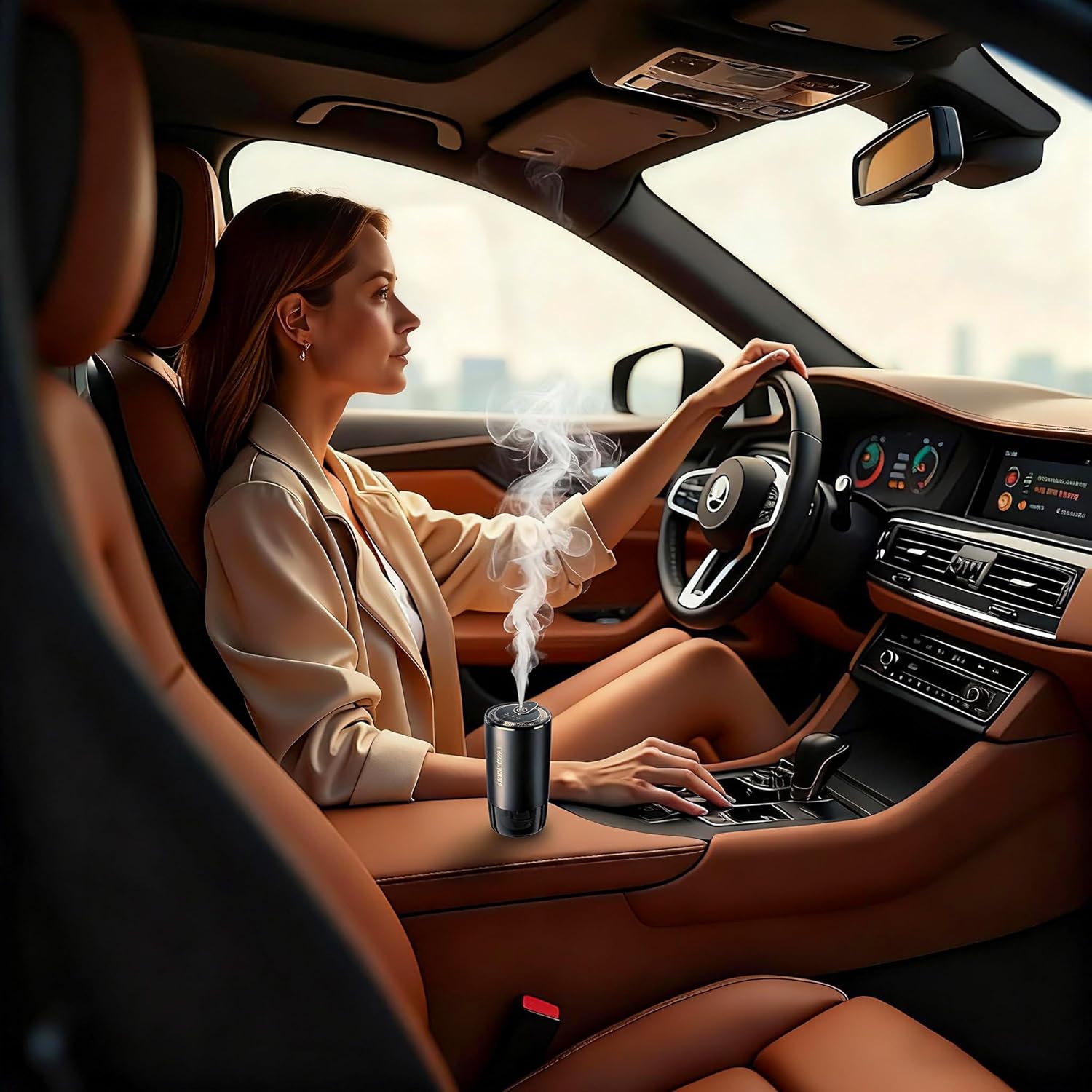 【Advanced Nano-Mist Odor Eliminator】 Unlike traditional car air fresheners, our ultrasonic smart car diffuser breaks down oils into ultra-fine, visible mist that actively neutralizes odors instead of just masking them. Enjoy faster, longer-lasting fragrance distribution in every corner of your vehicle.
