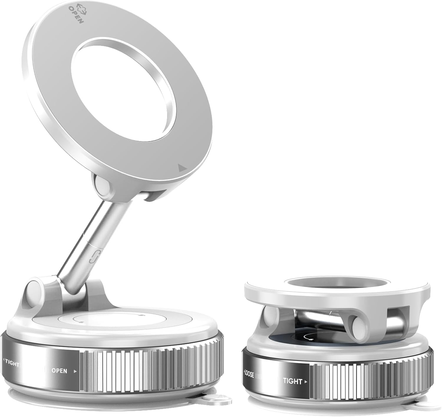 【360° Adjustable Positioning】This vacuum suction magnetic phone holder features a 360° rotating zinc-alloy arm tested over 7,000 times for durability, offering flexible angles for driving navigation or home use while maintaining long-term stability. The collapsible design folds to 70% of its size for easy portability, making it a compact, reliable must-have for home, car, or on-the-go use.
