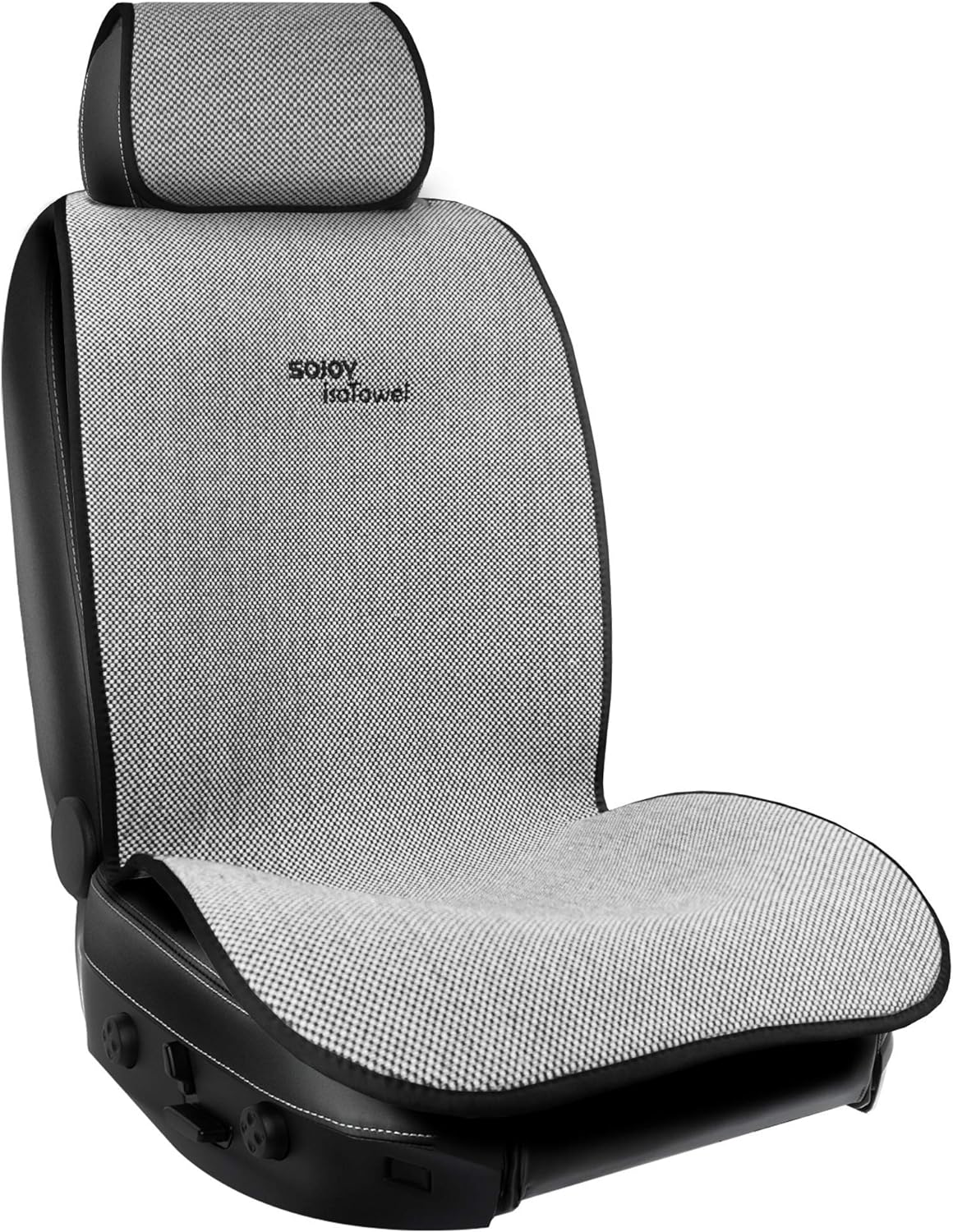 I purchased this because I didn’t want to dirty my driver’s side car seat when I’m sweating. My seats are cloth covered so they’re more difficult to clean than leather seats.The Sojoy IsoTowel Car Seat Cover is made to fit universally in all cars. It drapes over your seat kind of like a towel, but one that keeps its place due to the silicone beading on the underside and the various adjustable drawstrings. Thankfully the product also comes with a matching headrest cover too made with the same absorbent microfiber material.The material is meshed, almost like one of those Yoga towels that you place on top of your mat. The edges are reinforced so there won’t be any problems with fraying or worn edges after multiple washings. The material is made of microfiber, and the texture of the material is a bit stiff and not very soft, but it isn’t entirely too uncomfortable. It’s a little scratchy and I was hoping for something slightly softer. However, I can see how this towel would work well in absorbing sweat. The towel stays relatively cool as compared to other microfiber material, which is probably why they call this the “IsoTowel.”The most convenient thing about this product is that it is easy to clean! Just take it off and throw it in your washing machine! You can also easily remove the product, fold it up and store it in the inbuilt meshed bag. Leave it in your car and it’s ready to use at all times. This product would also probably work and fit in the backseat as well. You’ll just have to purchase 5 of them to cover the entire car (Two for front seats, 3 for back seats).So far I’ve had no problems with the towel sliding around my seat. The coverage is sufficient and I am quite satisfied with it.