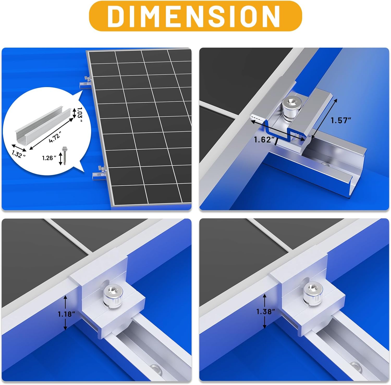 Solar Panel Mounting Brackets Mid Clamps End Clamps and Rails Kit for Roofing Solar Panels of Multiple Sized Side by Side,Mounting Clamps for Solar Panels Mounts PV Modules Fixing Rooftop Installation Support for 4 Panels