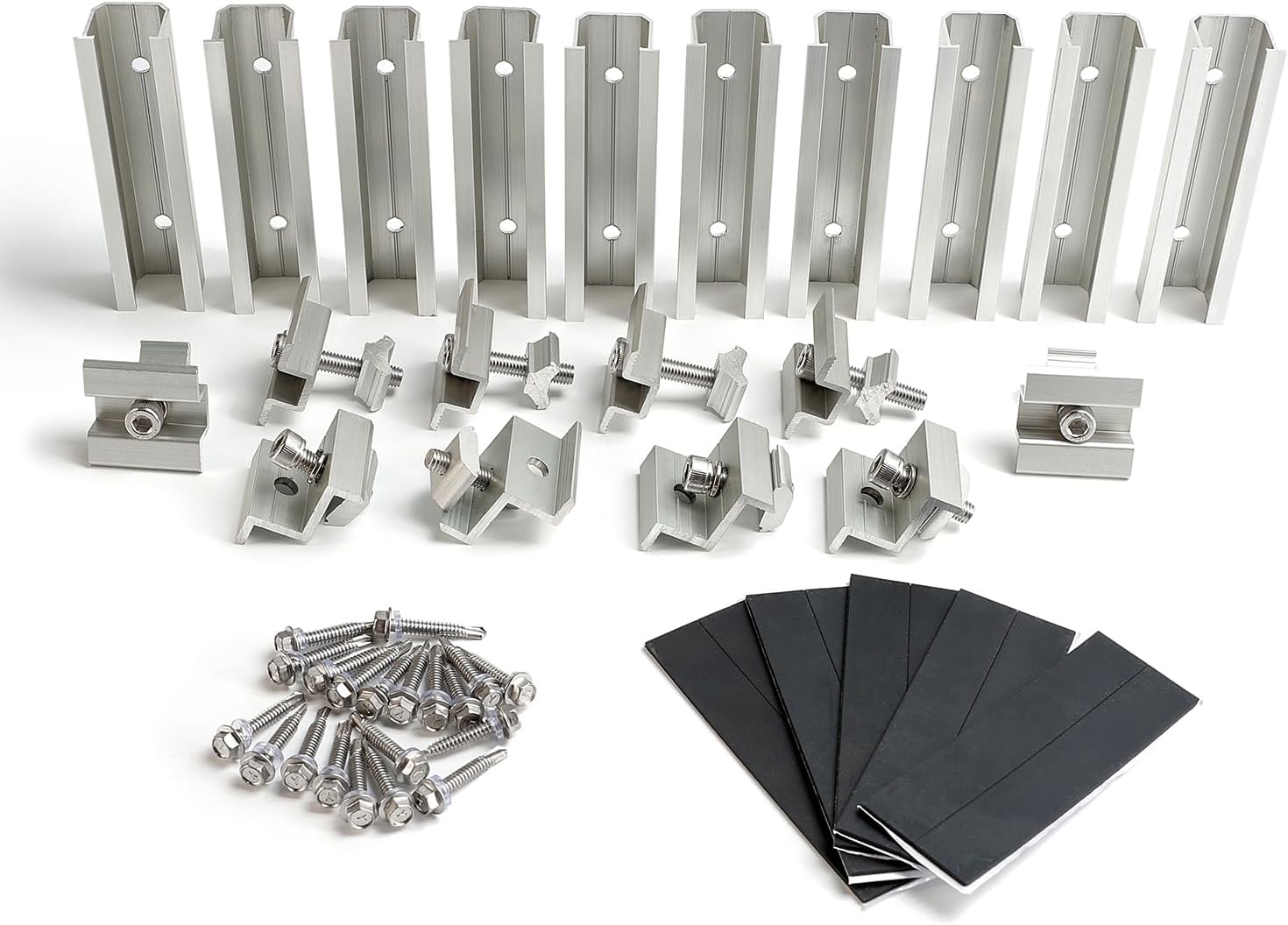 This solar panel roof mounting kit has worked out really well for my projects.The aluminum parts feel like good quality—sturdy but still light enough to handle easily on the roof. The rails and clamps are straightforward to work with, and the design makes aligning and tightening everything pretty intuitive once you get going. I’ve installed several large panels on my sheds using this kit with no issues, and everything has stayed solid and secure through wind and weather. Being able to use it on different roof types is a nice bonus if you have a mix of structures.If you’re planning a DIY solar install on sheds or other small buildings, this is a very practical, easy-to-use mounting kit that does the job right.