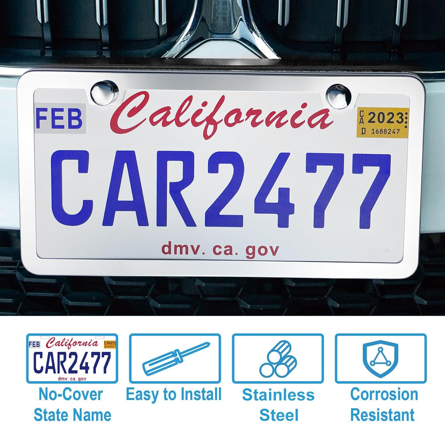 • Thin edge license plate frame won’t block states or Tags.​ It’s legal in most US States.​ This license plate frame using silver stainless steel polishing process, is a more economical choice for owners.