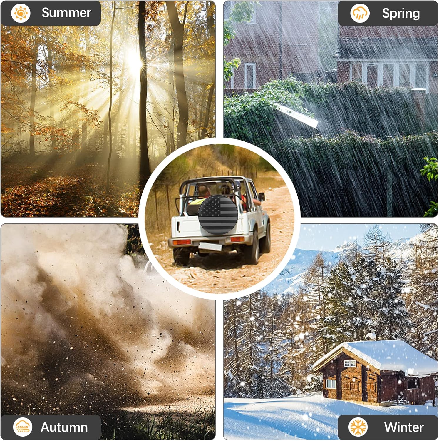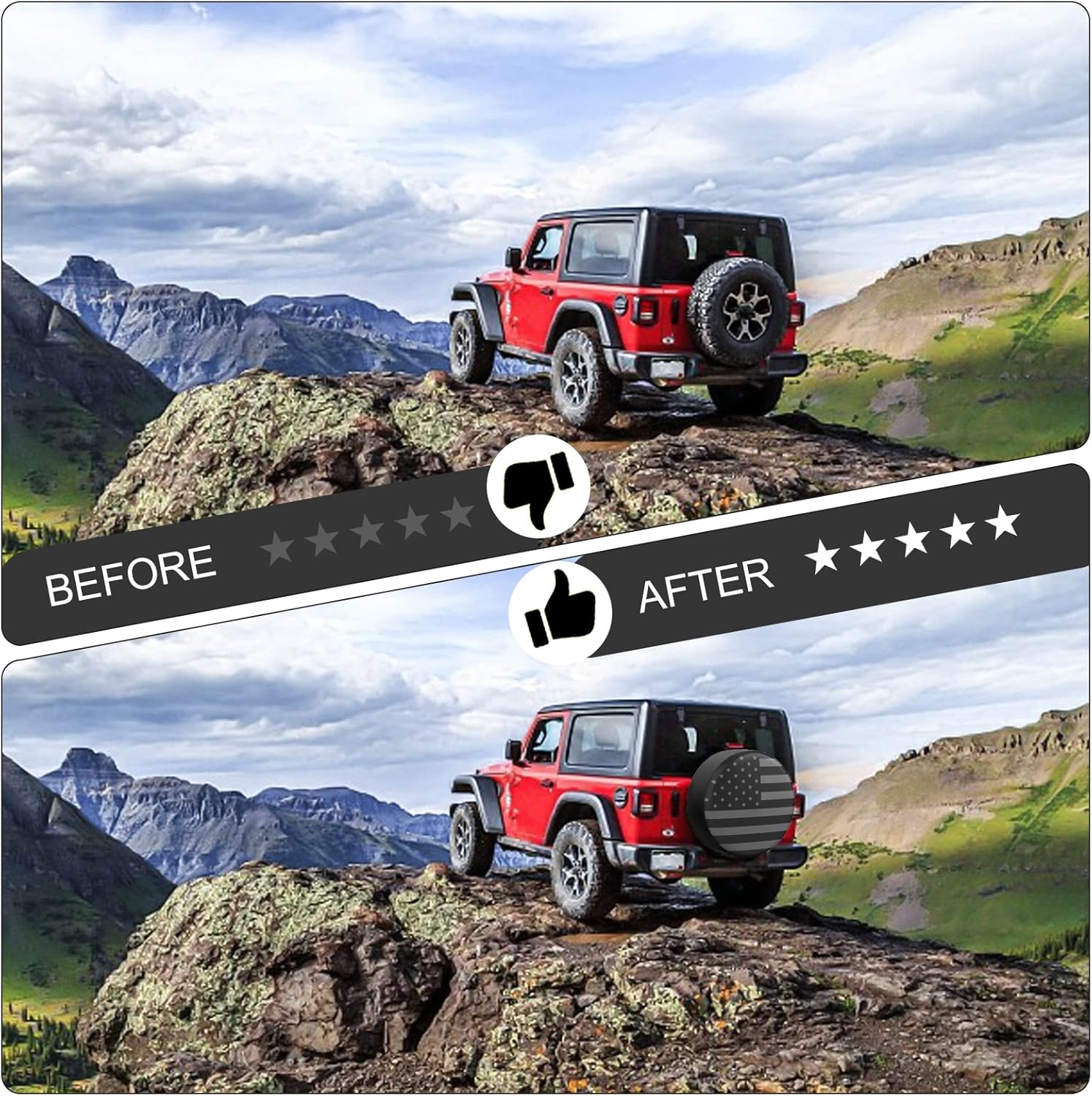 High Quality – Tire covers are made of heavy duty PVC with PU surface which is waterproof,dustproof,easy to clean,soft and non-scratch.Maintain shape and long lasting in any temperature. Popular American flag desgin which is beautiful and tasteful. Reinforced durability with neat and tight stitching