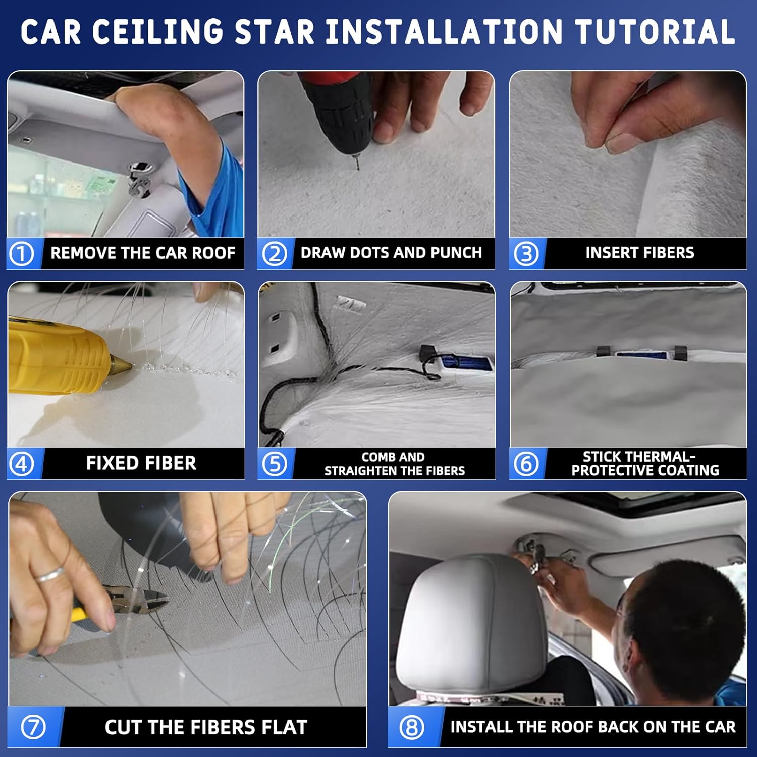 【Safe to Use】The Headliner replacement kit has a working voltage of 12V, equipped with short circuit protection and memory function. Waterproof, extremely low-heat,the product is installed in the ceil touchable and safety.