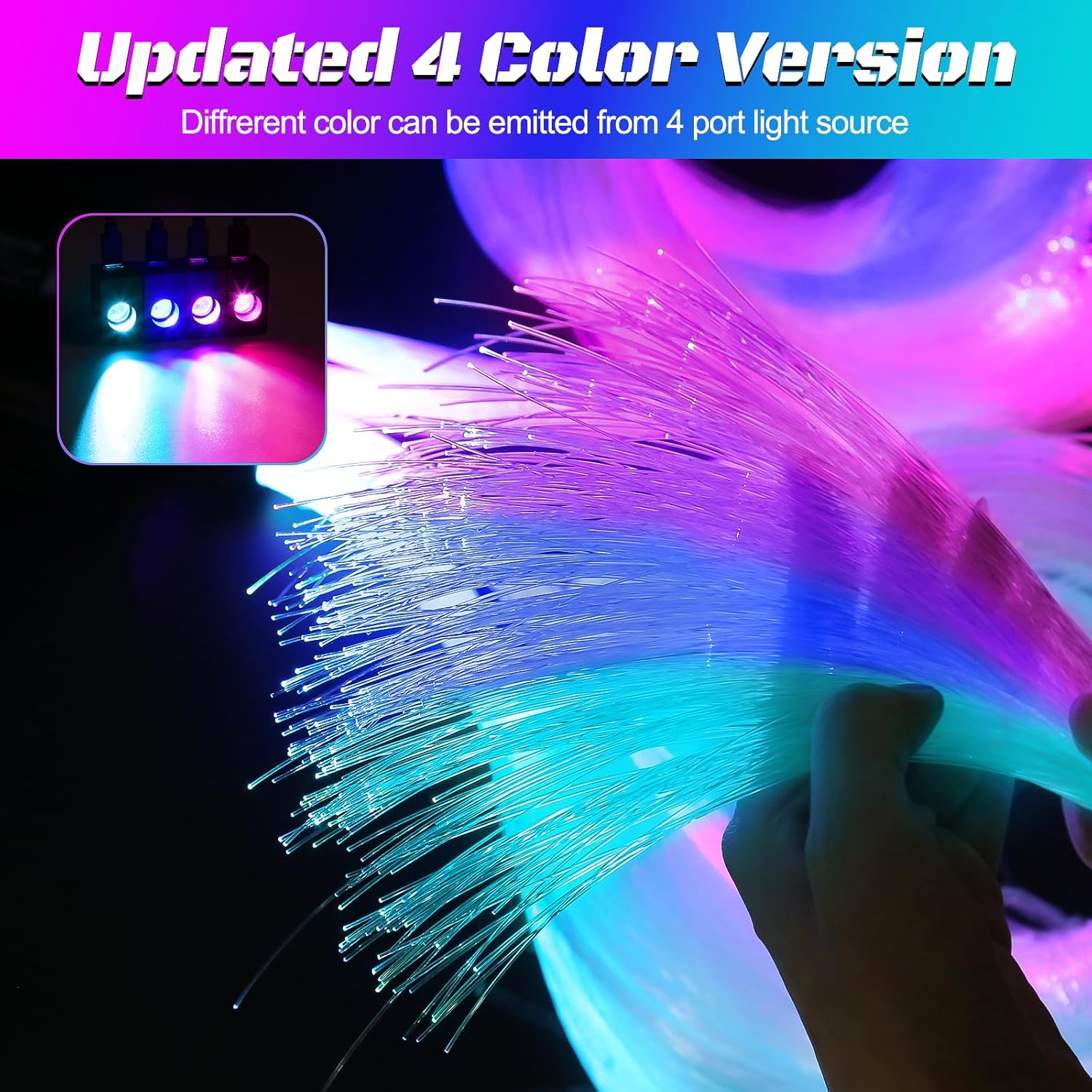 【Music Sensor】The 4-port design can accommodate more fiber, Built-in sound sensitive function, the car decoration starry sky top can sync any sound captured from microphone, then change colors following the music rhythm as well as your voice.