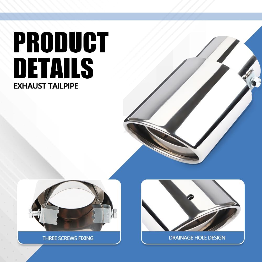 [Easy installation]: The exhaust tailpipe installation method is very simple, using screws to connect, first loosen the screw on the tail pipe, and then put the tail pipe in the appropriate position of the car exhaust pipe tail, and finally tighten the screw to complete the installation, the installation process does not need to replace any parts, do not need to weld, do not need to drill, you can easily do it yourself in a few minutes.
