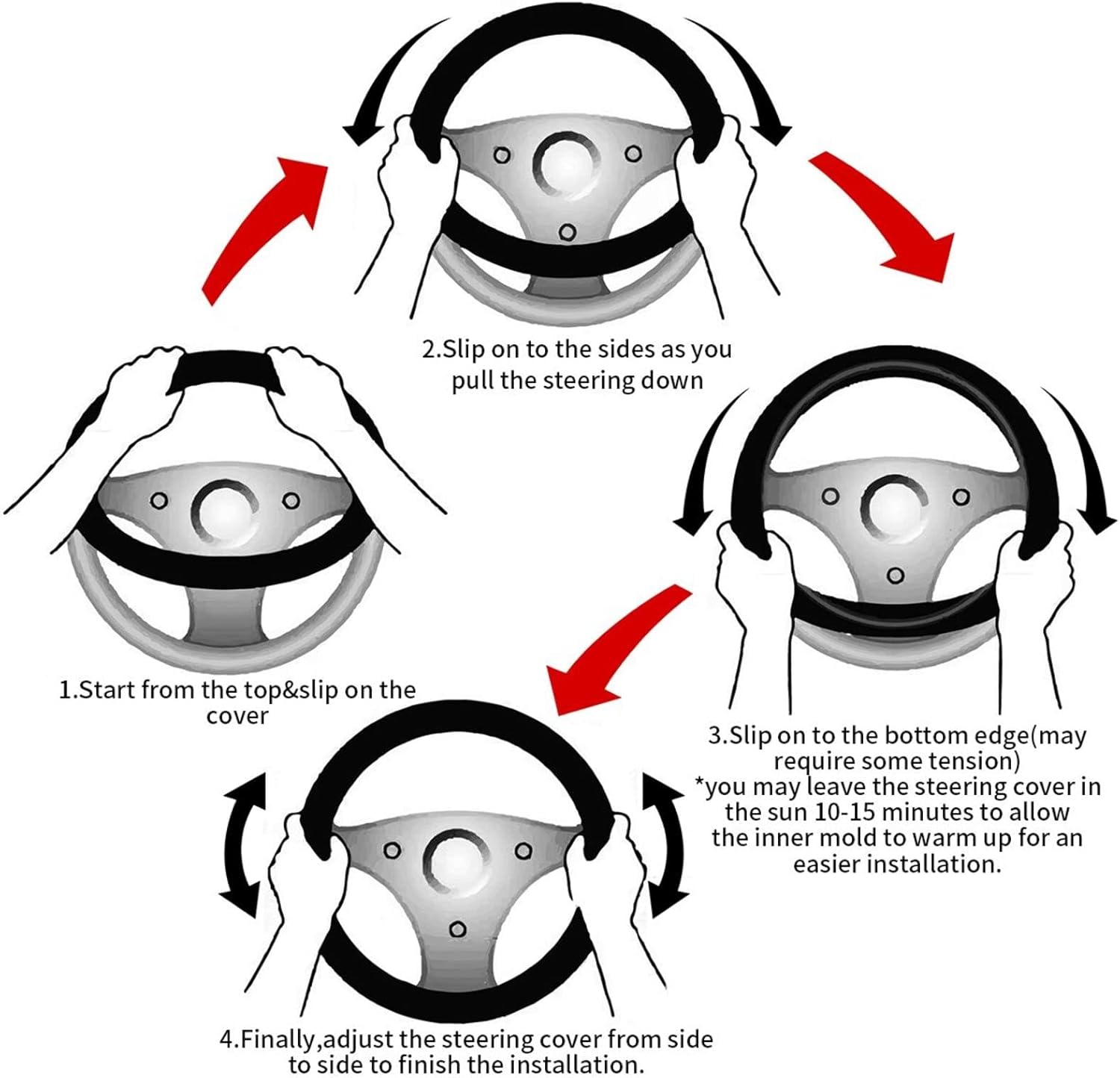Easy Installation&Care: Because Of The Ductility Material, Anyone Can Easy Install This Steering Wheel Cover, No Tools Required. Made Of Washable Material, Super Easy To Clean. Hand Wash Or Machine Wash Is Good.