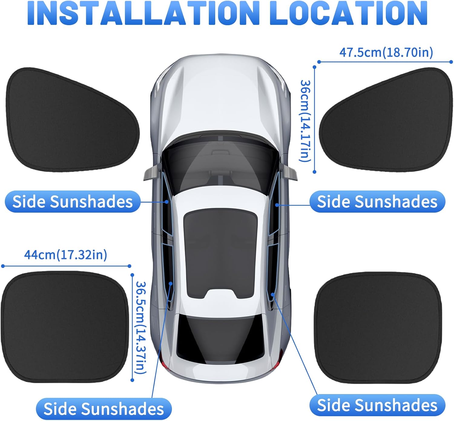 3. **Universal Fit & Premium Protection** – Sized at **47.5cm x 36cm (18.7″x14.2″)**, it adapts to most car windows (sedans, SUVs, trucks). Blocks **99% of UV rays** and reduces cabin heat for a cooler, safer ride.