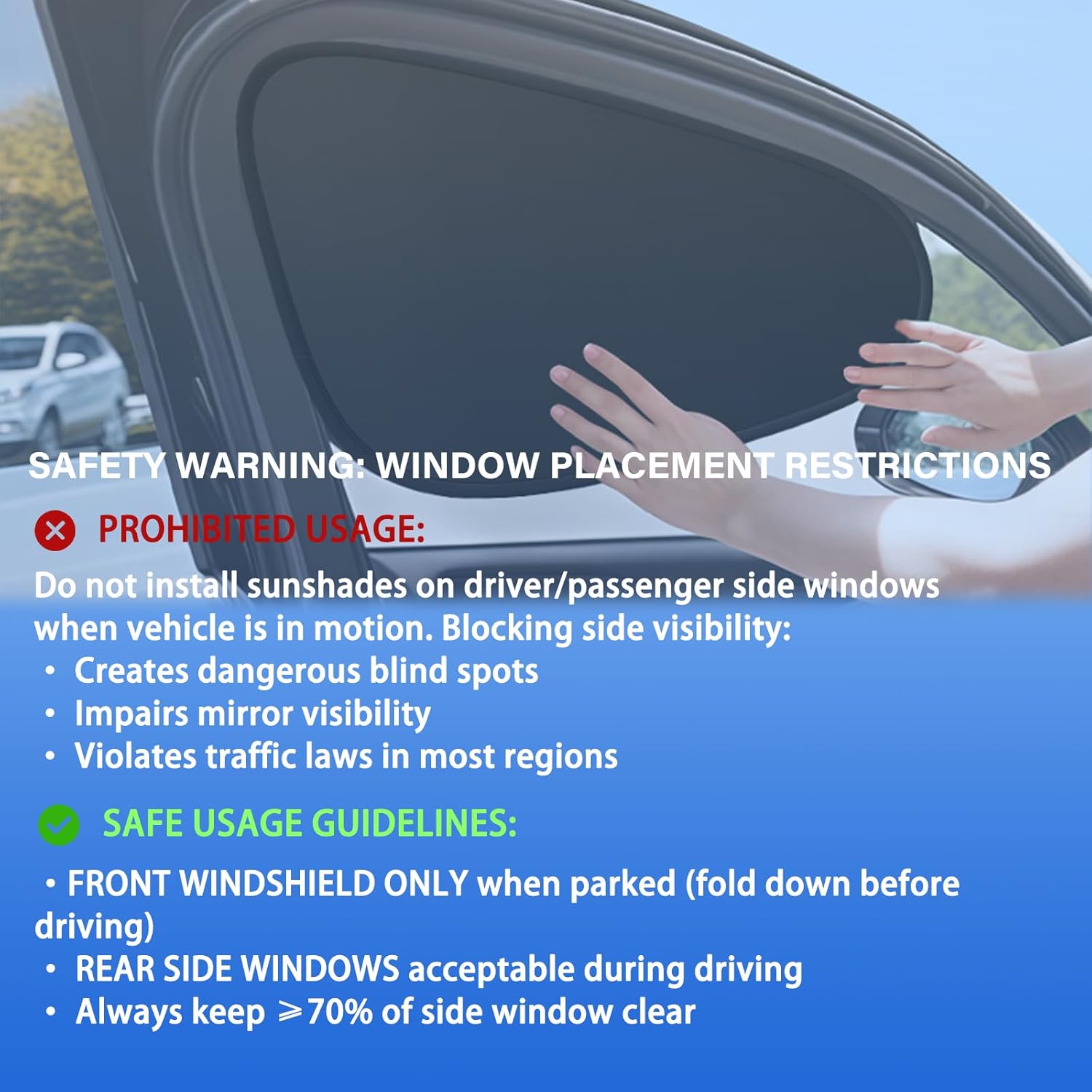 2. **Rearview Mirror Visibility** – Unique cutout design ensures **no obstruction to your rearview mirror**, maintaining full driving safety while shielding passengers from harsh sunlight.