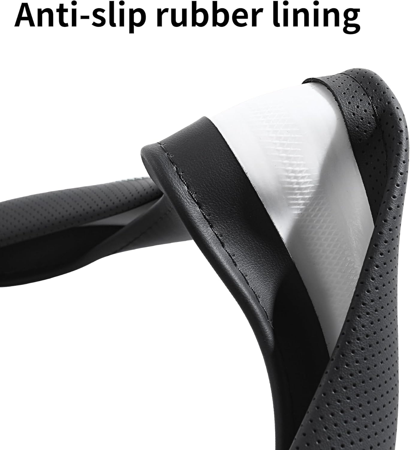 【Enhanced Grip】Features an advanced non-slip rubber inner layer, it locks securely onto your steering wheel, preventing any unwanted movement for a safe and seamless, OEM-like driving experience.