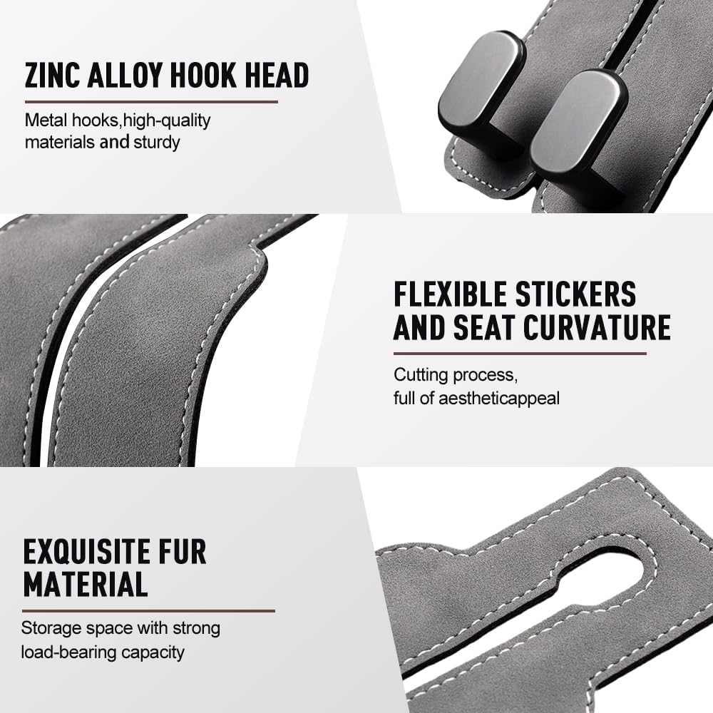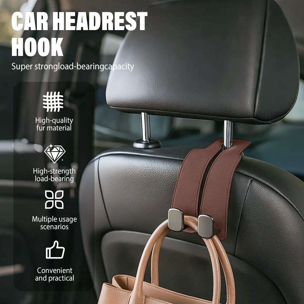 Suede Leather Car Seat Hook, 2026 New Car Seat Back Storage Hook, Car Purse Hook Seat Back Hanger Storage Organizer, With Double Metal Hooks, Car Seat Headrest Hooks for Purses Bag (2pcs – Black)