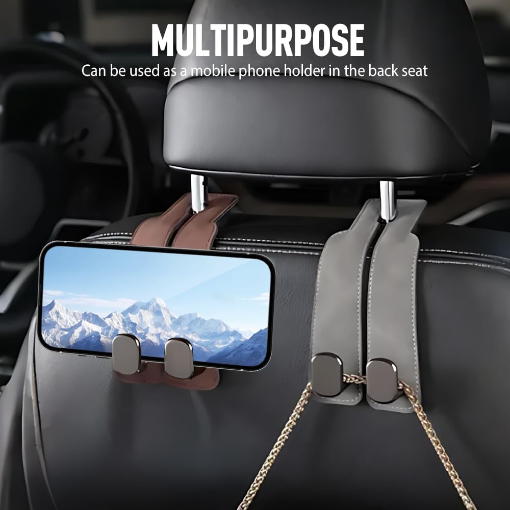 【Multi-Functional Double Hook Design】Car Organizer Hooks and Car Seat Hooks support dual hanging, allowing you to carry multiple items like purses, shopping bags, or coats at once. The Car Bag Hanger evenly distributes weight to prevent tilting or slipping, even on rough roads