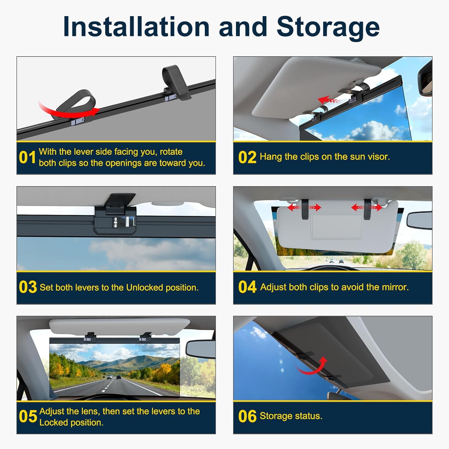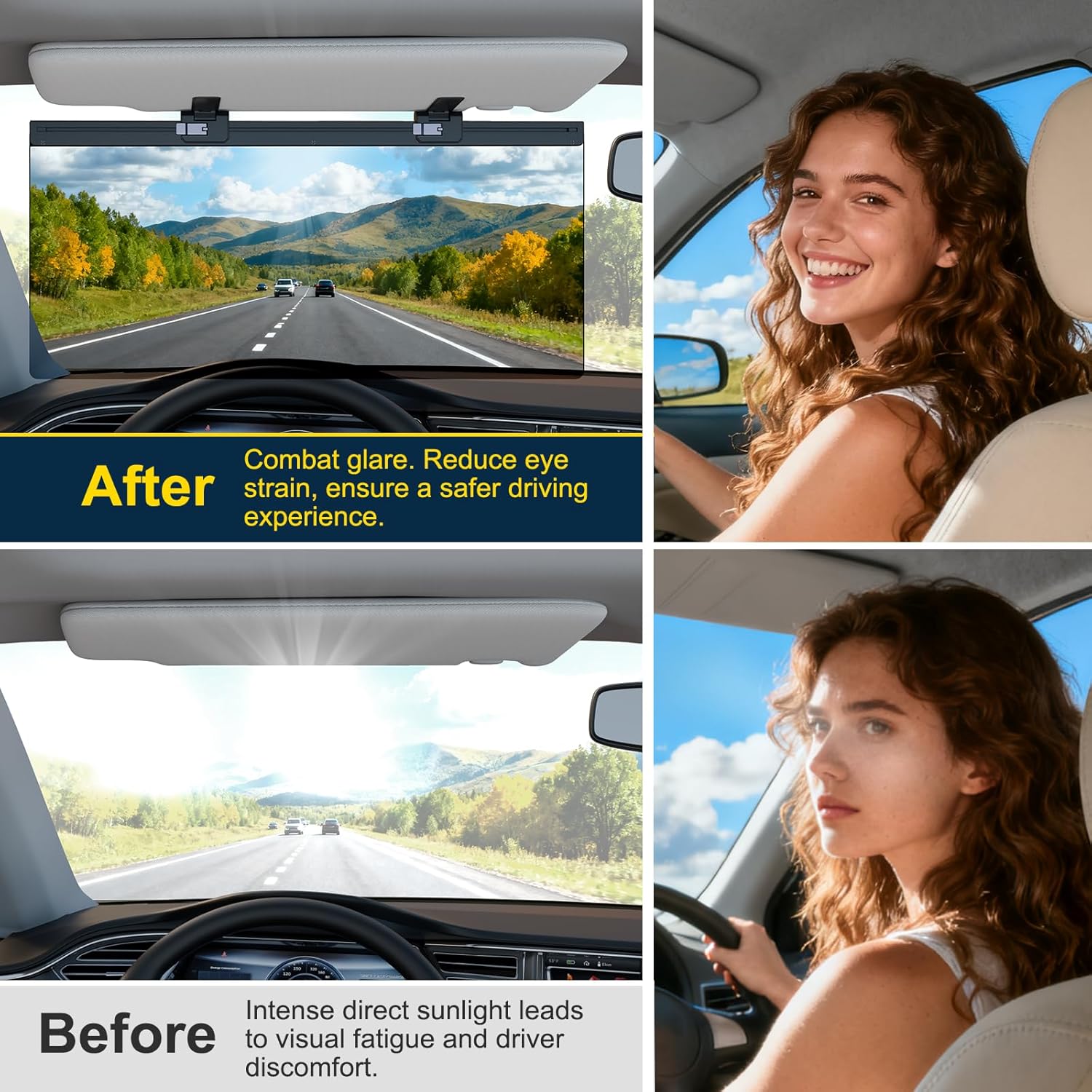 【Premium PC Lens – Shatterproof & Extremely Durable】 Made from high-strength PC lens sun visor extender material, this durable car visor extension is 60x stronger than glass. It stays crystal clear under extreme temperatures, functioning as a long lasting sun visor extender that won’t warp, yellow, or scratch over time.