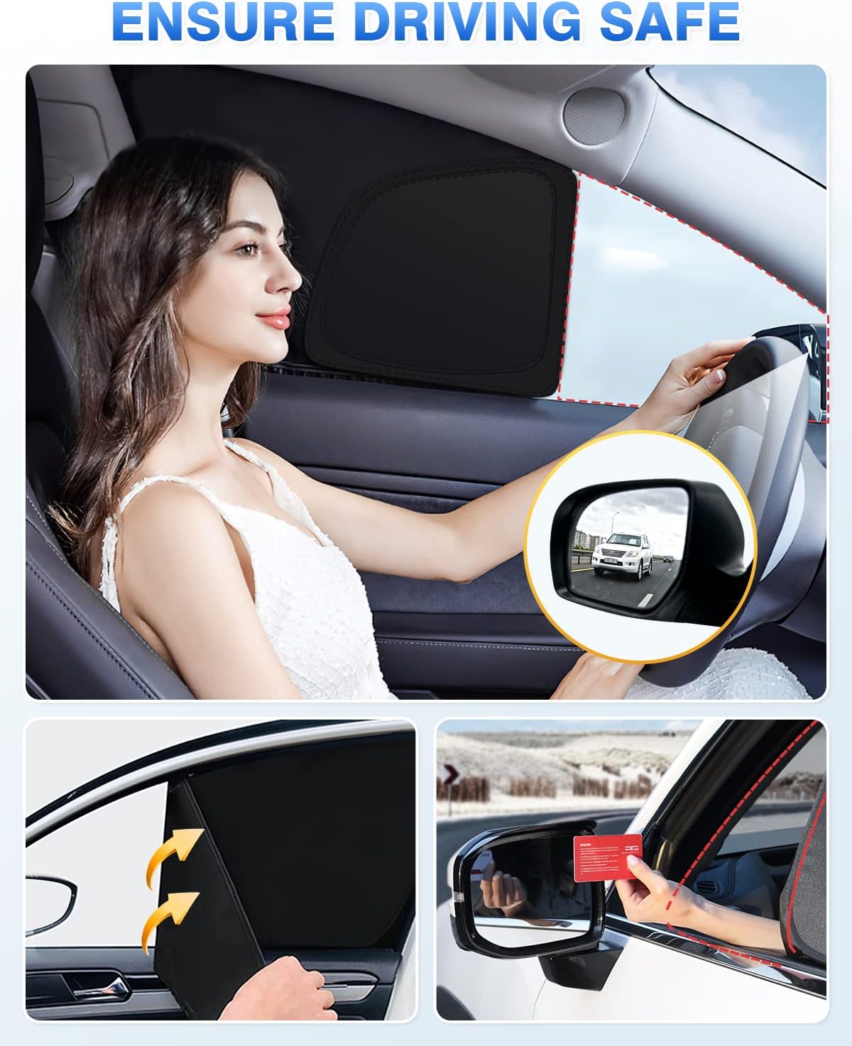 【All-Round Protection】Our window sun blocker kit is perfect for blocking harmful UV rays from damaging your car interior. The window shades also do a good job of protecting babies and kids from sunshine, and reducing car interior temperature. Great accessories for your car!