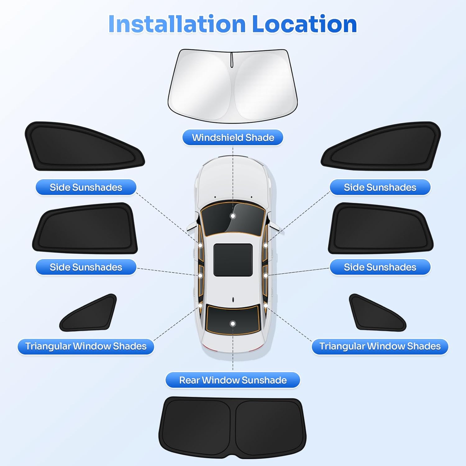 【All-Round Protection】Our window sun blocker kit is perfect for blocking harmful UV rays from damaging your car interior. The window shades also do a good job of protecting babies and kids from sunshine, and reducing car interior temperature. Great accessories for your car!