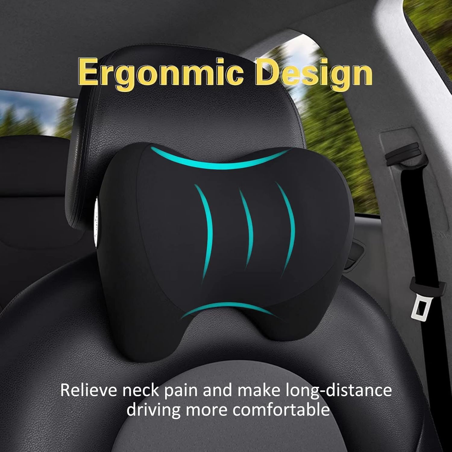 𝟭𝟬𝟬% 𝗦𝗣𝗔𝗖𝗘 𝗠𝗘𝗠𝗢𝗥𝗬 𝗙𝗢𝗔𝗠 – 100% pure space memory foam is used inside the car neck pillow to comfortably support the head and neck. Maintain the correct driving posture to provide you with a comfortable driving experience. The car headrest pillow is made of slow-rebound memory foam for a comfortable ride.
