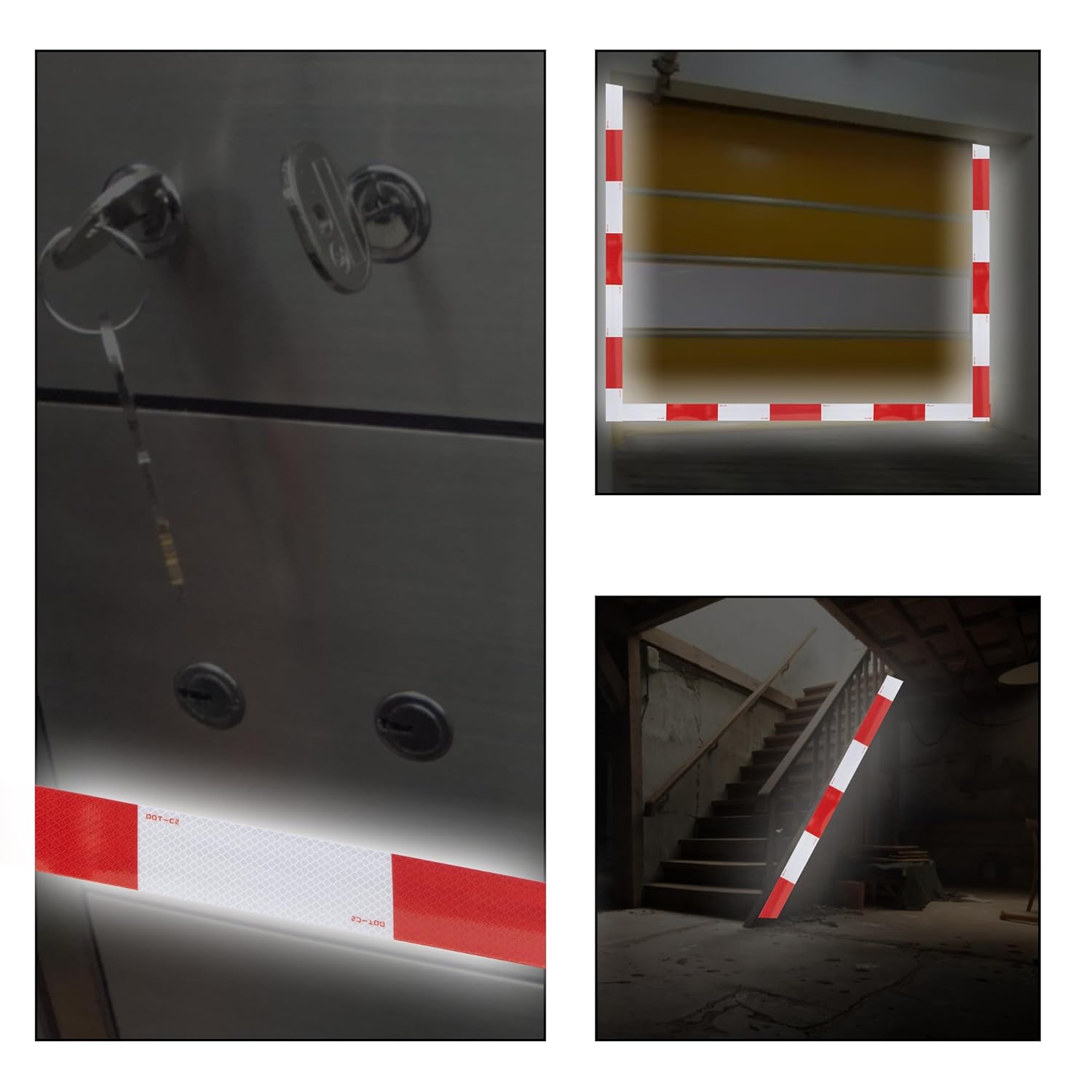 【High-visibility red and white design】: Our reflective tape is designed with bright, eye-catching colors that stand out and clearly indicate hazardous areas, increasing safety awareness.