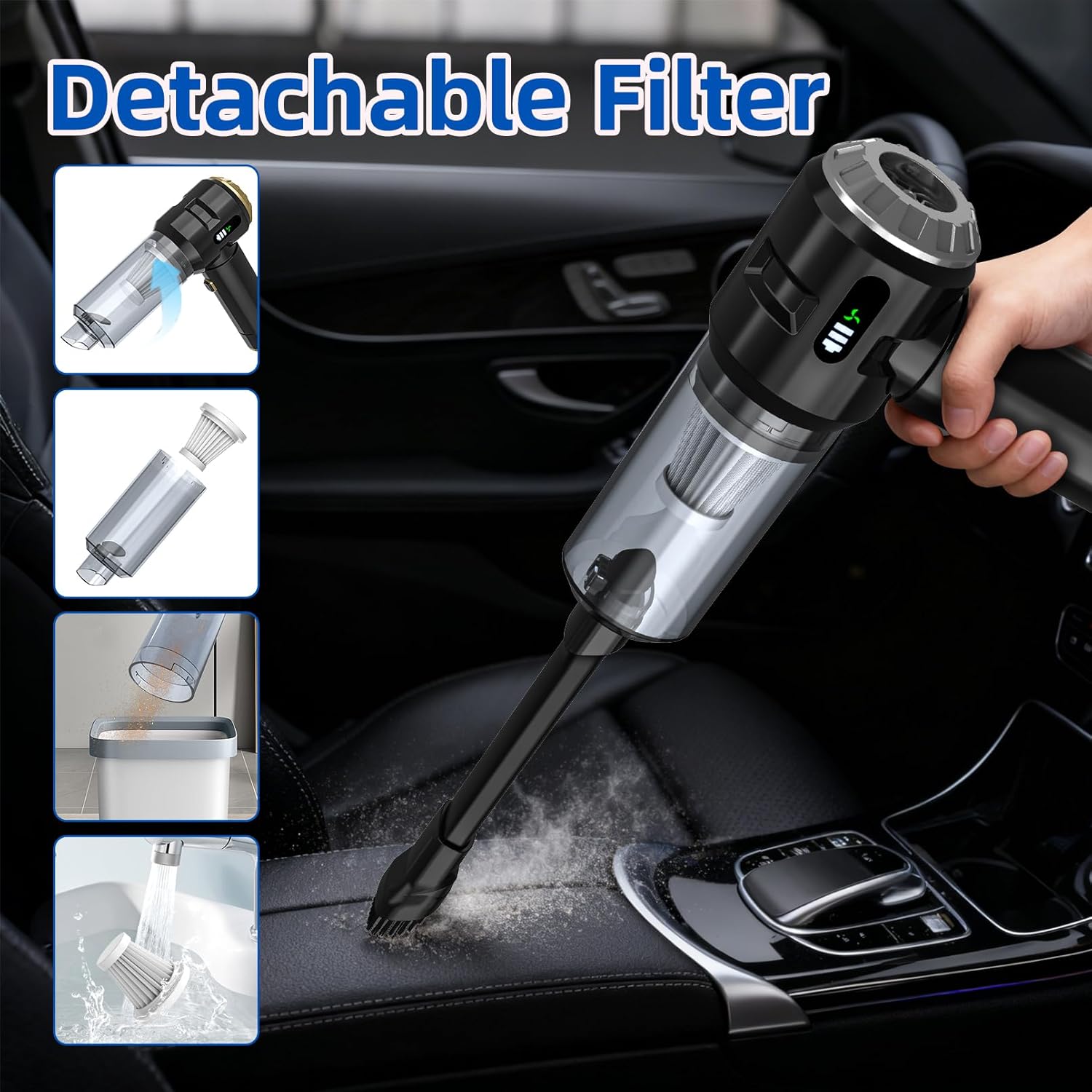 This handheld vacuum is a lifesaver for my car. It is lightweight but has surprisingly strong suction. The different attachments make it easy to reach tight spots under the seats. Battery life is great, and it’s very easy to empty. Perfect for quick cleanups! Easy for use