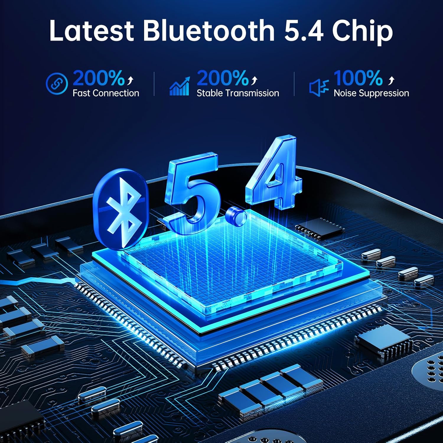 [Upgraded Bluetooth 5.4 Technology] The latest Bluetooth 5.4 technology, optimizing the transmission delay and connection defect problems, Bluetooth 5.4 will bring you a faster, more stable and smarter connection with less sound quality loss,uninterrupted calls and music experience. It takes only 1 second to complete pairing, and no need to repeat pairing after the first successful pairing with your device.