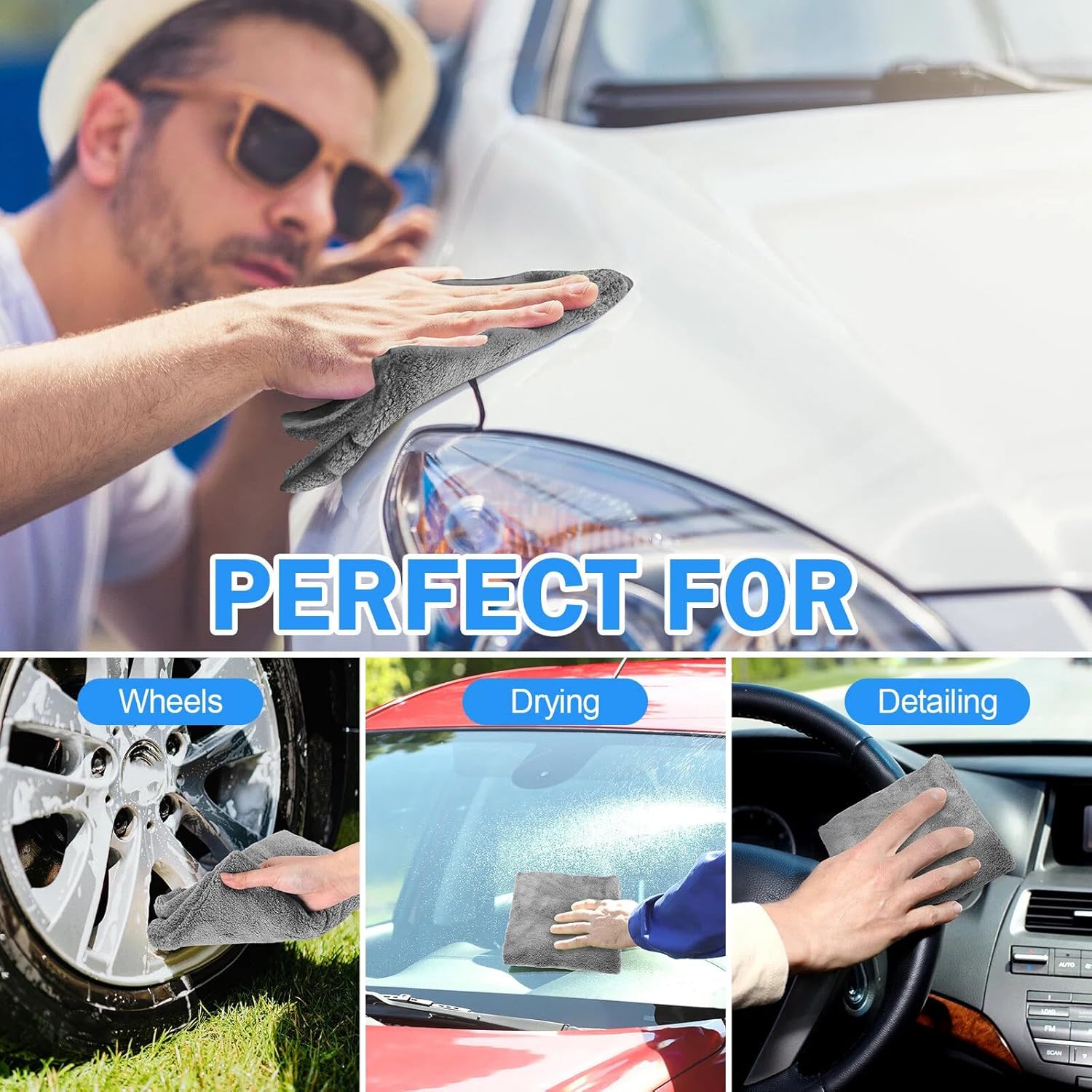 Soft and Absorbent: our large microfiber towels featuring double sided short plush, can absorb soap water more quickly, and you can also wring them out without much efforts, which will reduce the drying time in the process of trivial detailing work