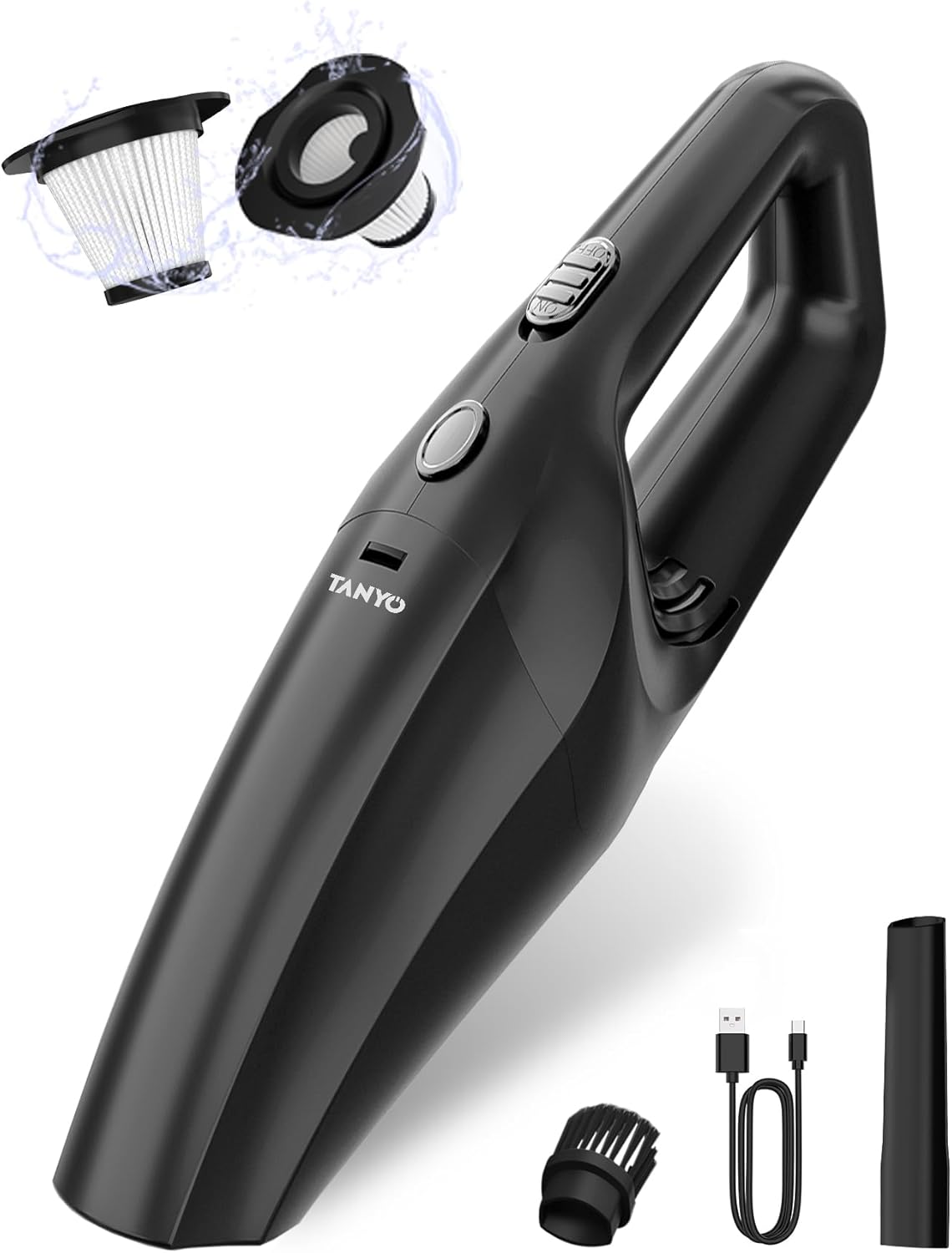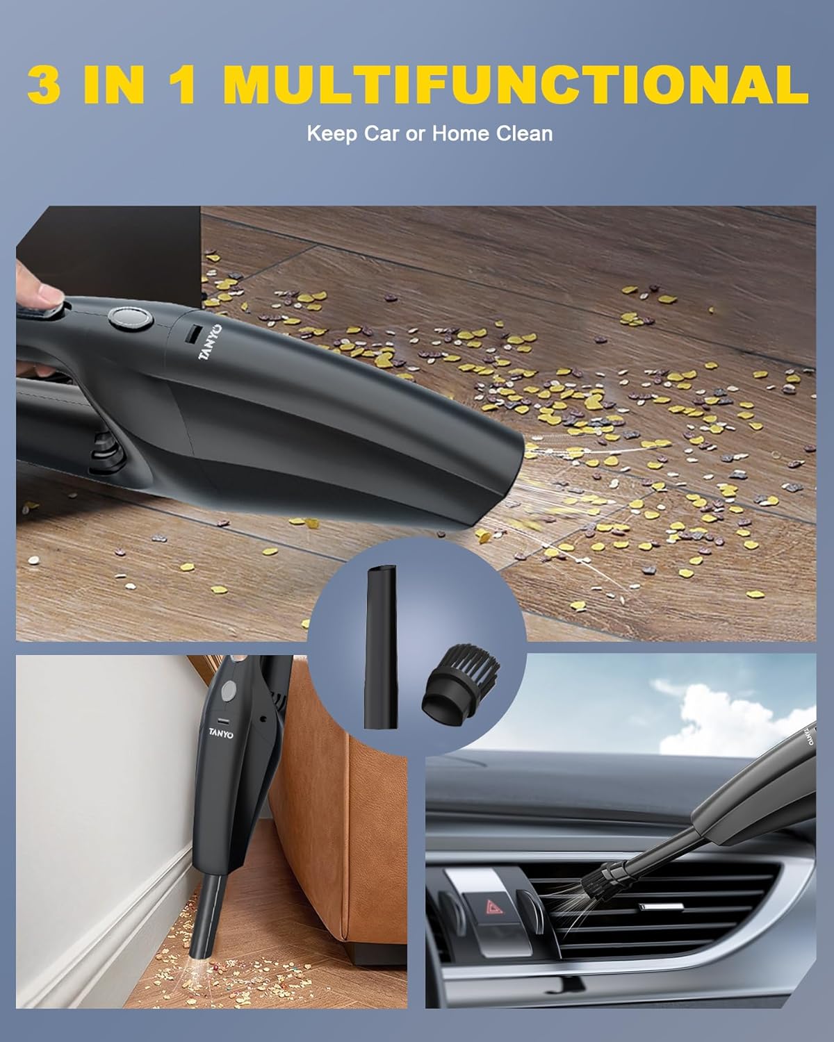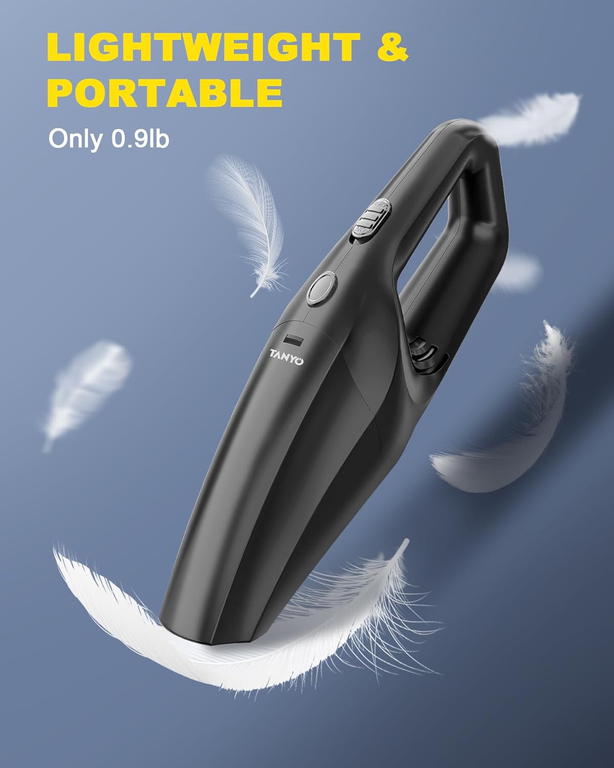 8000PA POWERFUL SUCTION: Car Vacuum features an improved motor with suction power of up to 8000PA, not only does it extend the life of the handheld vacuum cleaner, but it also minimizes noise and disturbance to others.. Extra powerful motor and long battery life helps you to do a complete cleaning. Quickly removes dust, debris, dog hair, dirt, sand or crumbs.