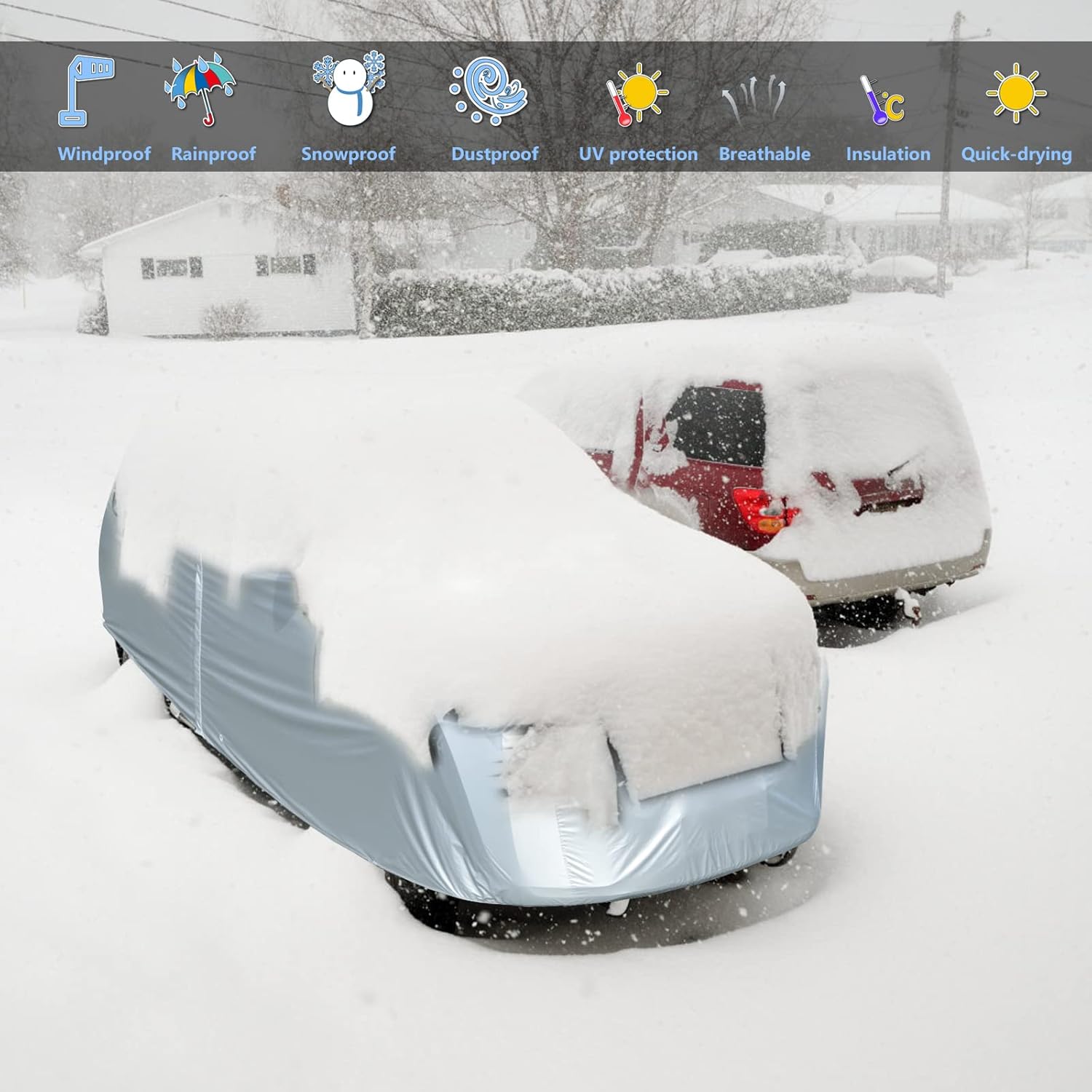 【Complete Protection】Tecoom car covers is perfect for indoor and outdoor use, no matter the sun or the cold weather, protects your car safe from UV rays, snow, rain, frost, sand,dust, leaves, branches, birds dropping.
